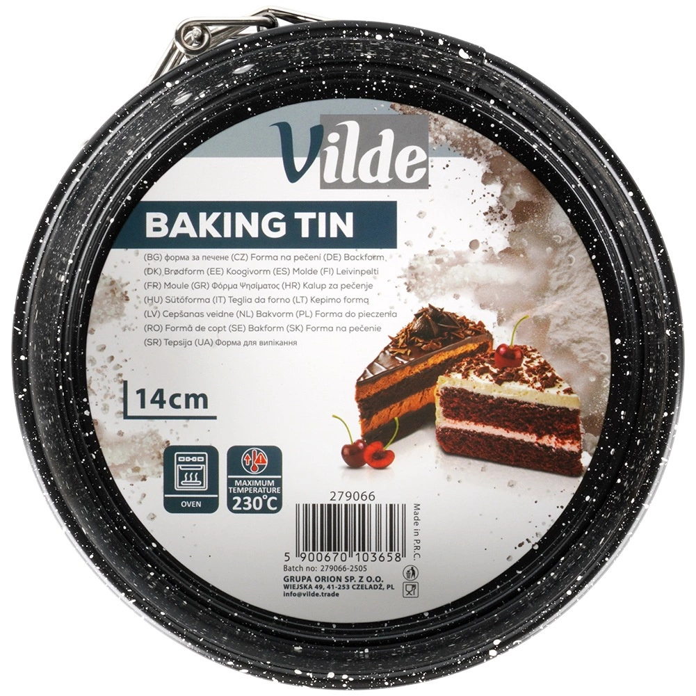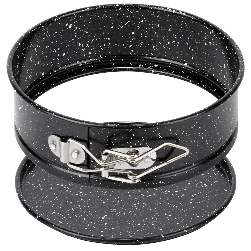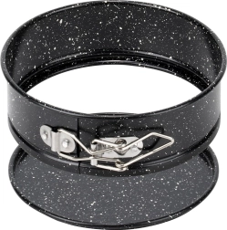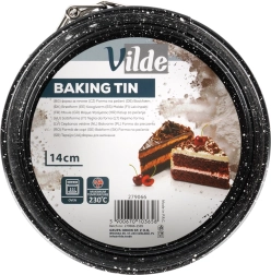 Formă de tort rotundă compactă cu diametrul de 14 cm, cu margine detașabilă și fund amovibil pentru scoaterea ușoară a deserturilor. Fabricată din oțel carbon rezistent, cu strat antiaderent cu efect granit, asigură coacere uniformă până la 230 °C. Ideală pentru mini torturi, cheesecake-uri, pandișpanuri și deserturi la rece pentru coacerea de zi cu zi.