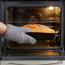 Această formă dreptunghiulară din oțel carbon rezistent, cu strat de suprafață antiaderent din granit, este excelentă pentru pâine de casă, pateuri, chec, guguluf și aluaturi dospite. Distribuie căldura uniform, nu absoarbe mirosuri sau lichide, iar produsele de patiserie vor fi mereu coapte frumos și rumenite.
