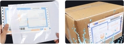 Buzunare transparente practice pentru documente, ideale pentru logistică și ambalarea comenzilor e‑shop. Datorită foliei rezistente și suprafeței impermeabile, etichetele și foile transportatorului rămân protejate pe tot parcursul livrării. Marginea deschisă pe latura lungă facilitează introducerea rapidă a avizelor de expediție, facturilor sau certificatelor de garanție.