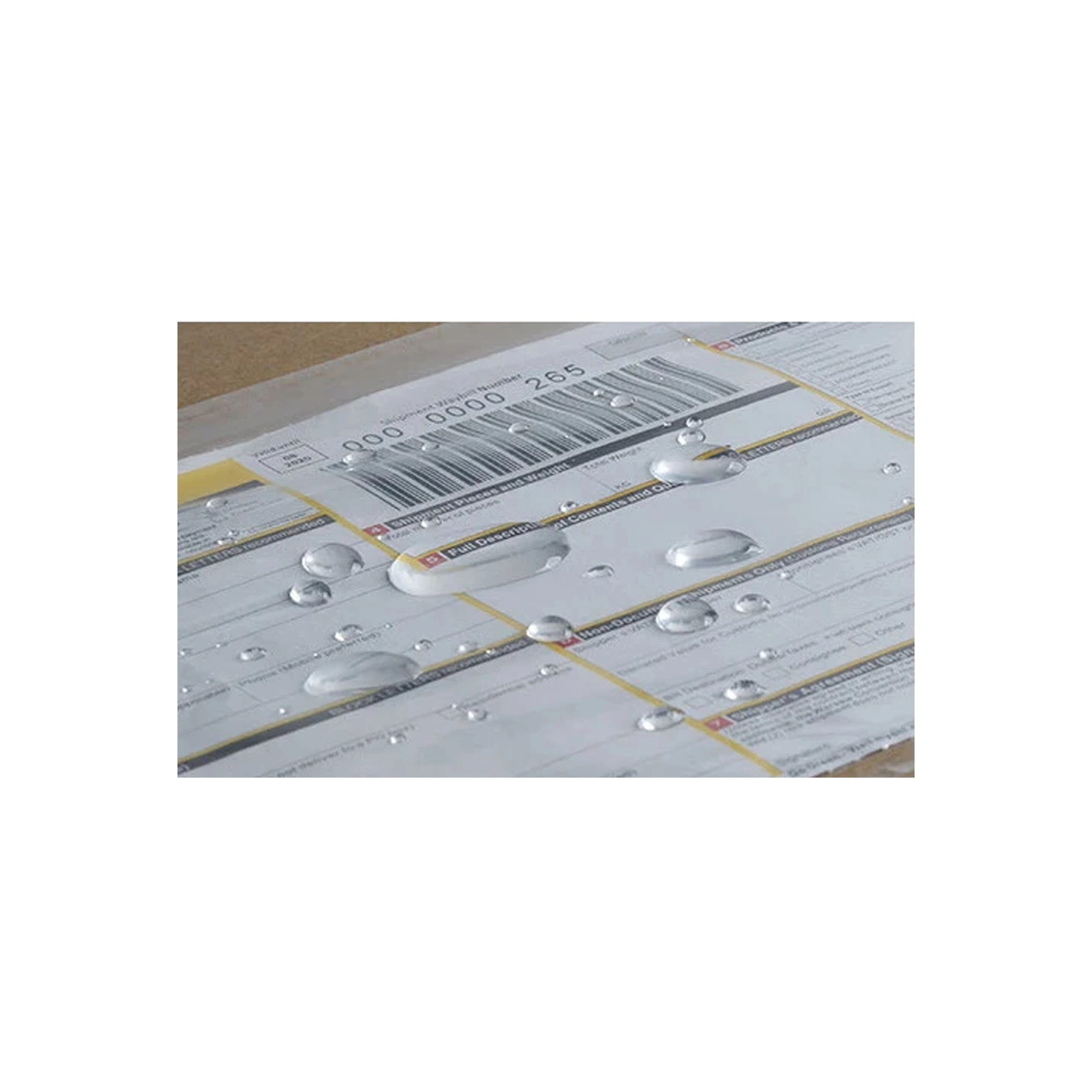 Folia transparentă rezistentă la apă protejează etichetele și codurile de bare de ploaie și murdărie – totul rămâne lizibil și ușor de scanat.