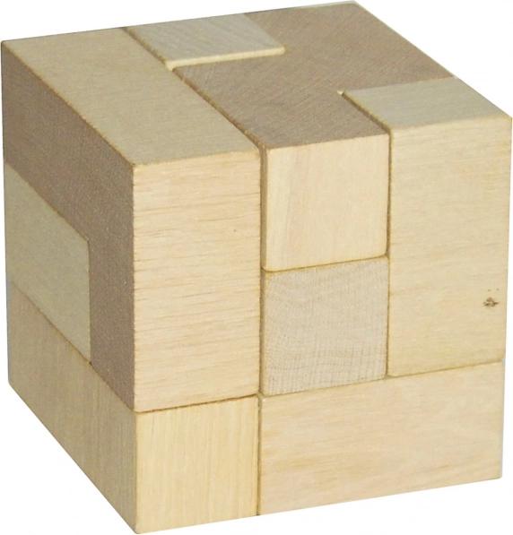 Descoperă farmecul unui puzzle din lemn care îți testează răbdarea și îndemânarea. Din șapte piese realizate cu precizie asamblezi un cub 3D stabil. Datorită materialului natural plăcut, piesele se manevrează ușor, iar jucăria atrage privirea de la prima vedere.