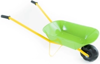 Încurajați copiii să se miște și să se joace în grădină cu o roabă practică pentru copii, în culoare verde. Cuva metalică stabilă și cadrul rezistent asigură o durată de viață îndelungată, iar roata din plastic reduce greutatea pentru o manipulare ușoară.