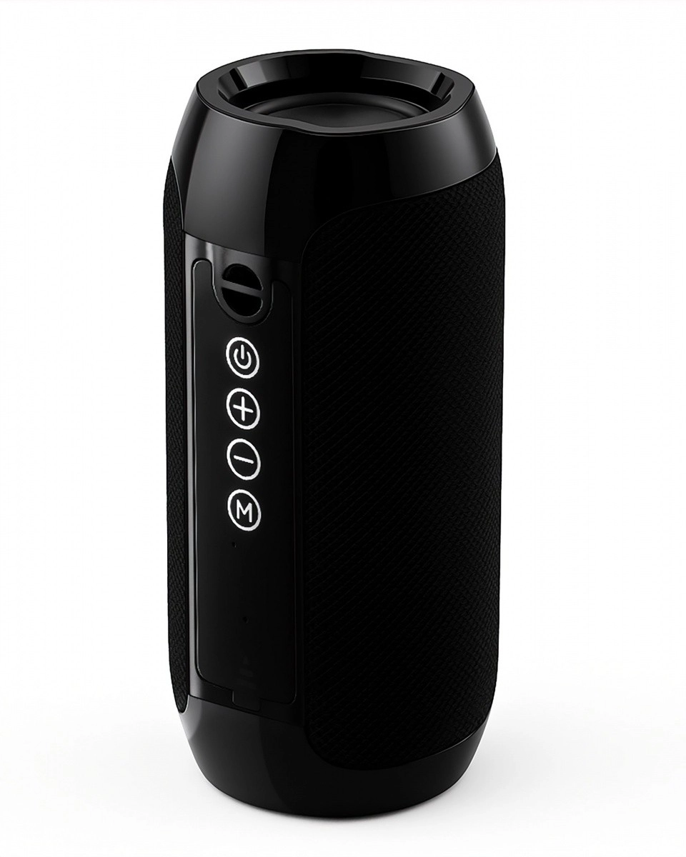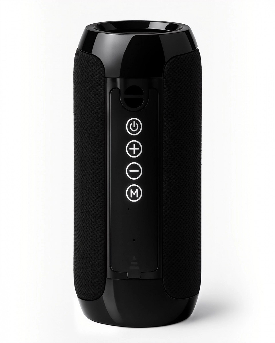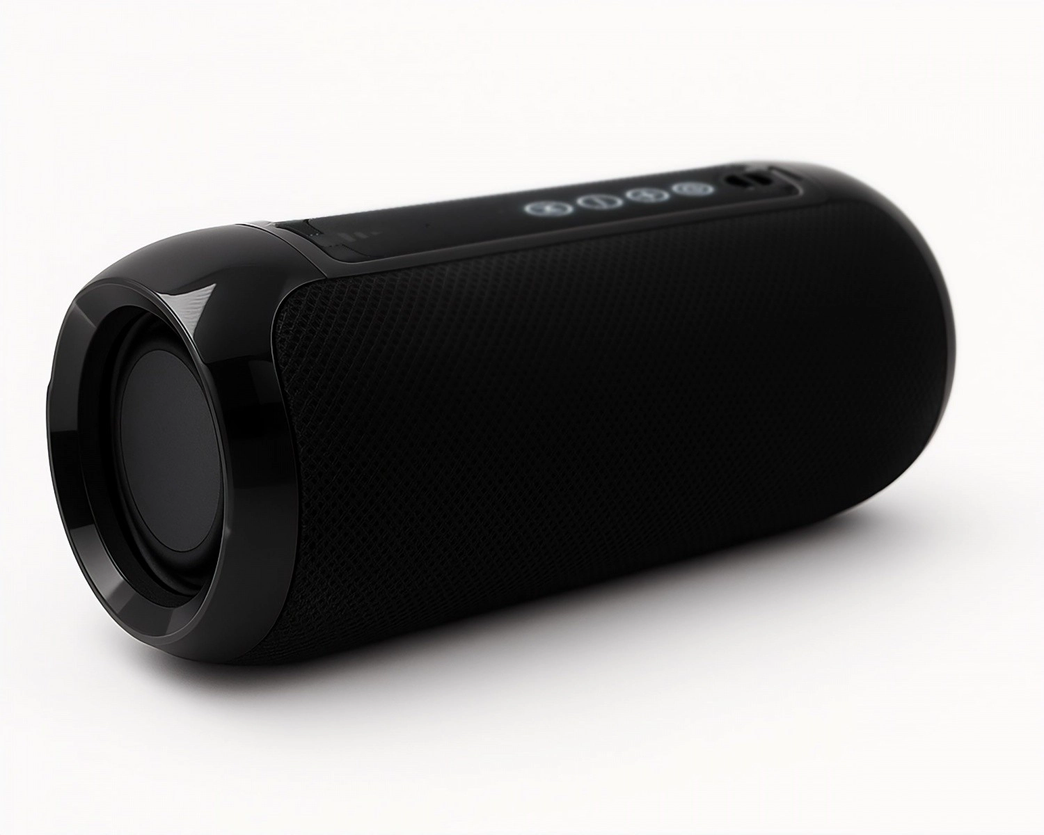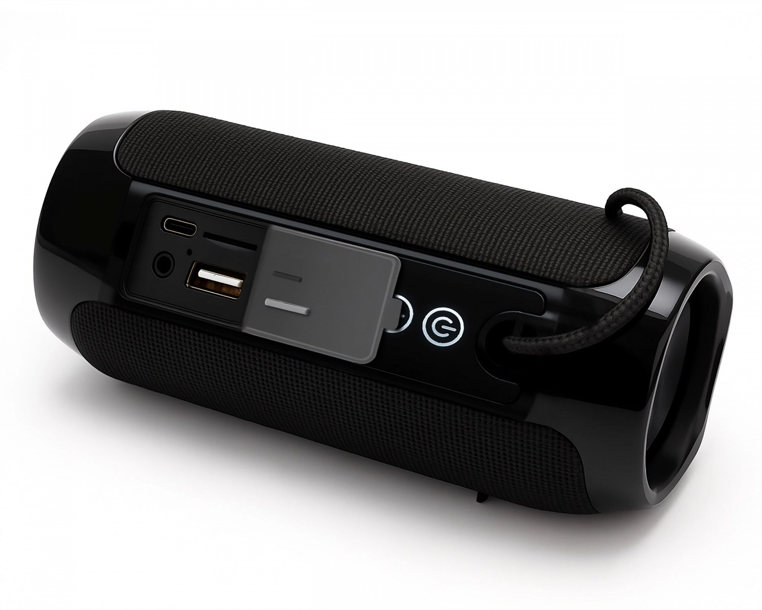 Construcția cilindrică robustă, cu radiatoare pasive, evidențiază basul și rămâne ușor de transportat. Încărcarea prin USB‑C este rapidă și comodă, astfel încât poți lua muzica oriunde – de la plajă, la camping, până la serile pe balcon.