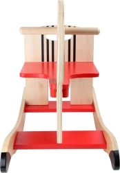 Balansarea dezvoltă în mod natural motricitatea grosieră, întărește stabilitatea trunchiului și susține coordonarea și simțul echilibrului. Lemnul natural elegant, cu accente roșii, se potrivește perfect în camera copilului. Produsul necesită asamblare simplă – este inclus un ghid ilustrat.