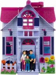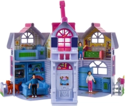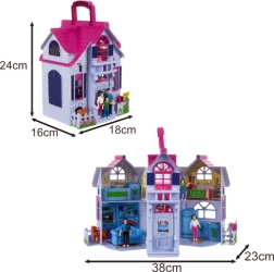 Această căsuță pliabilă pentru păpuși îi va încânta pe cei mici cu scene realiste din viața de acasă. La deschidere, obții un interior complet accesibil cu hol, bucătărie, living cu șemineu, baie, dormitor și cameră pentru copii. Setul include o familie (mama, tata, copilul), un cățel și mobilier, astfel încât copiii pot inventa imediat povești și își pot dezvolta imaginația.