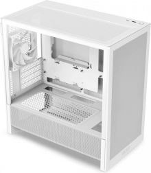NZXT H3 Flow este proiectată pentru pasionații care își doresc o carcasă micro-ATX compactă fără compromisuri la performanța de răcire. Panourile mesh pe toată suprafața în față, sus și lateral maximizează fluxul de aer și filtrează eficient praful, în timp ce tunelul ventilat pentru sursa de alimentare îmbunătățește admisia de jos.