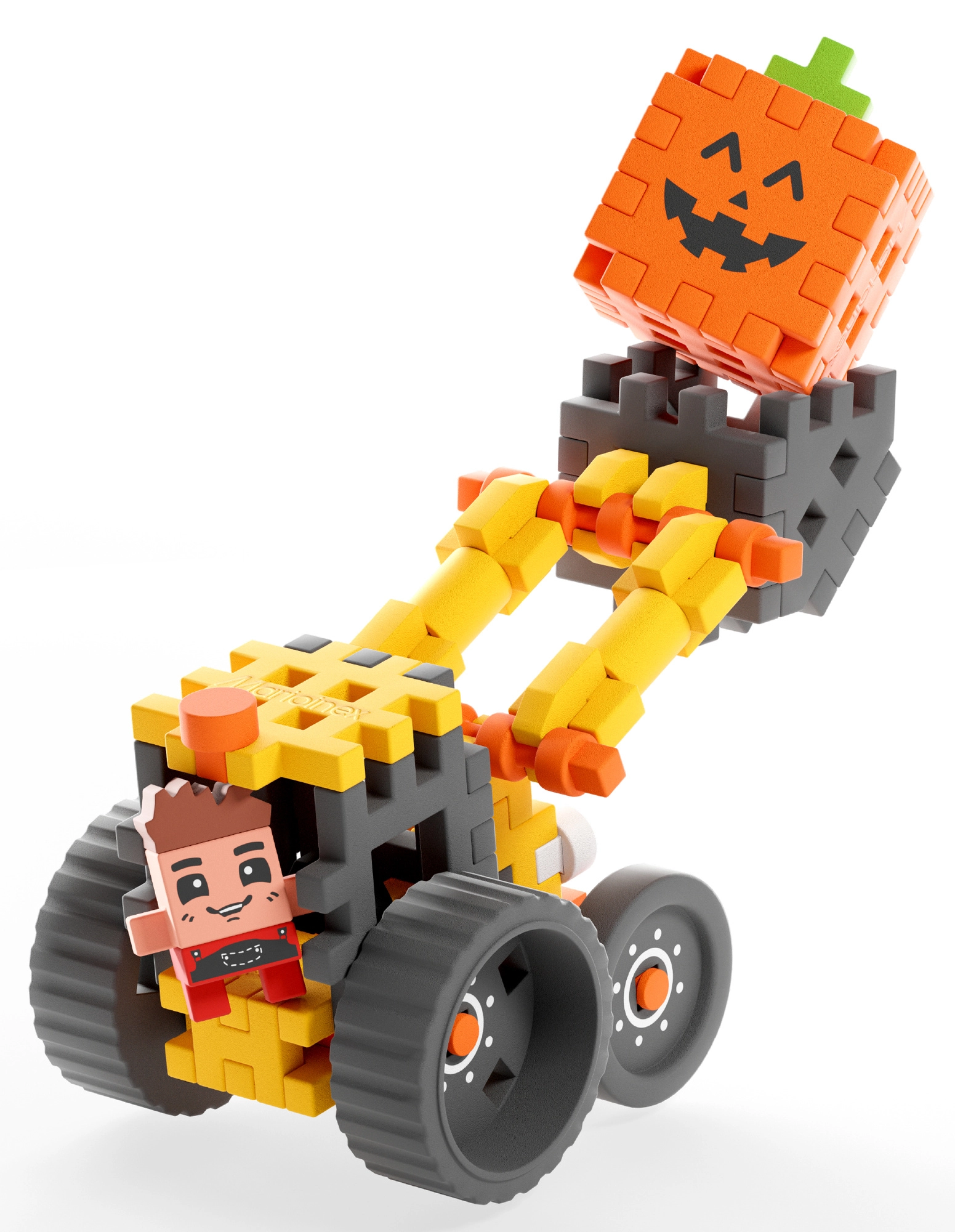 Construiește un încărcător frontal realist și pornește într-o aventură la fermă alături de figurina lui Freddy. Datorită pieselor flexibile Mini Waffle, setul se asamblează și se dezasamblează ușor, astfel încât copiii pot construi, modifica și inventa povești mereu noi. Brațul mobil și roțile robuste aduc multă acțiune și distracție la transportul „dovlecilor” și la curățarea curții.