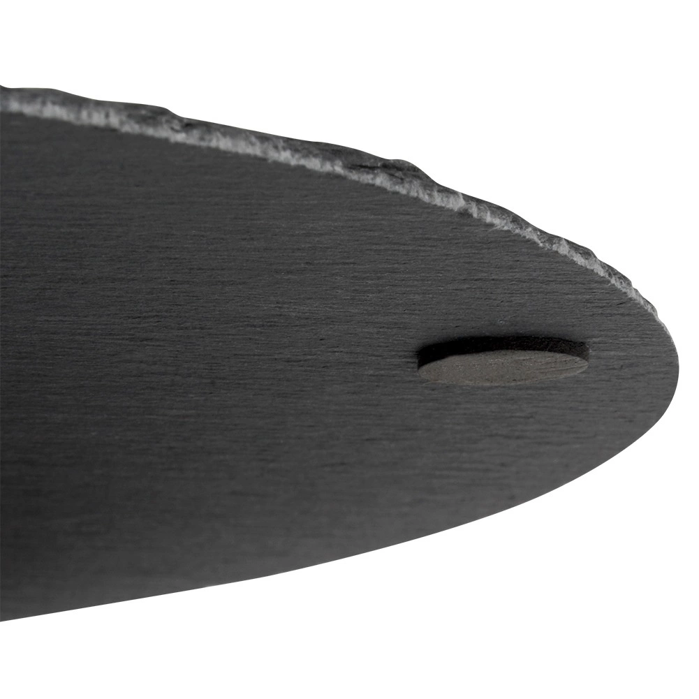 Această tavă rotundă din ardezie aduce la masă eleganță naturală și funcționalitate. Ardezia neagră naturală, cu textură fin cioplită și margini finisate manual, arată atrăgător și pune în valoare preparatele servite. Datorită piciorușelor antiderapante rămâne stabilă și protejează suprafața mesei de zgârieturi.