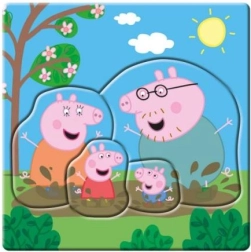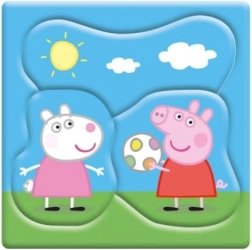 Puzzleurile cu tema Peppa sunt simple și ideale pentru copii care abia învață să asambleze forme.