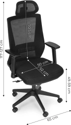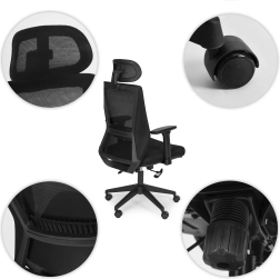 Tetiera poate fi ajustată pe înălțime și unghi pentru a reduce solicitarea coloanei cervicale. Cotierele, reglabile pe înălțime și unghi, îmbunătățesc ergonomia la tastare și la convorbiri.