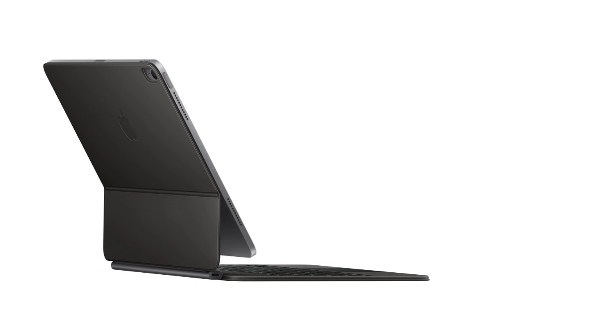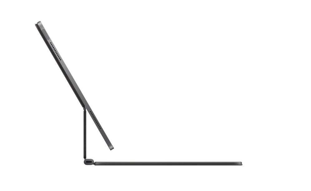 Trackpadul generos din sticlă acceptă cursorul și gesturile Multi‑Touch în iPadOS pentru lucru rapid, intuitiv și precis.