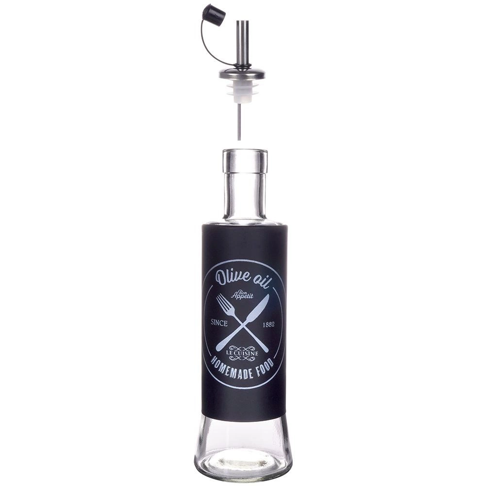 Cu acest set de două sticle elegante vei avea mereu uleiul și oțetul la îndemână și sub control. Sticla de înaltă calitate, combinată cu învelișul negru mat și gura de turnare din inox, asigură o utilizare curată, comodă și igienică. Marcajele clare te ajută să distingi rapid conținutul.
