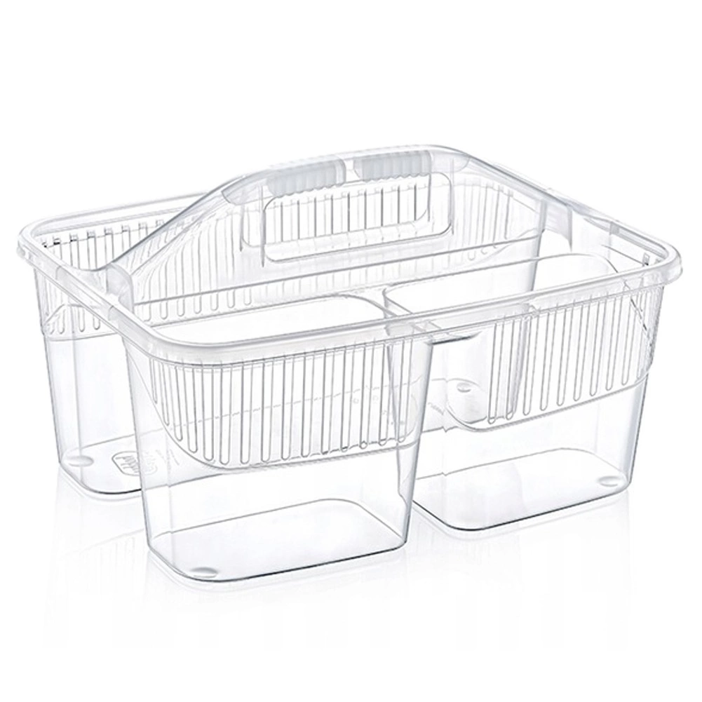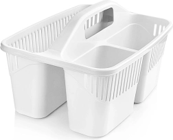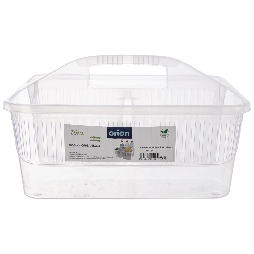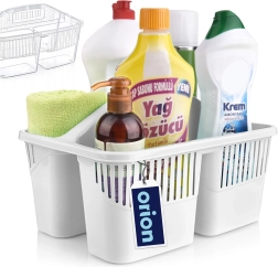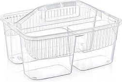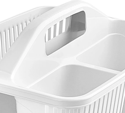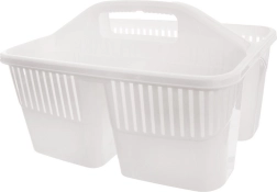 Păstrați ordinea la curățenie cu organizerul compact pentru detergenți cu trei compartimente separate. Datorită mânerului central solid, puteți transporta cu ușurință toate produsele necesare, periile și bureții dintr-o încăpere în alta. Coșul este realizat din plastic de calitate, în variantă albă sau transparentă (expediem aleatoriu), este ușor, rezistent și se menține ușor curat.