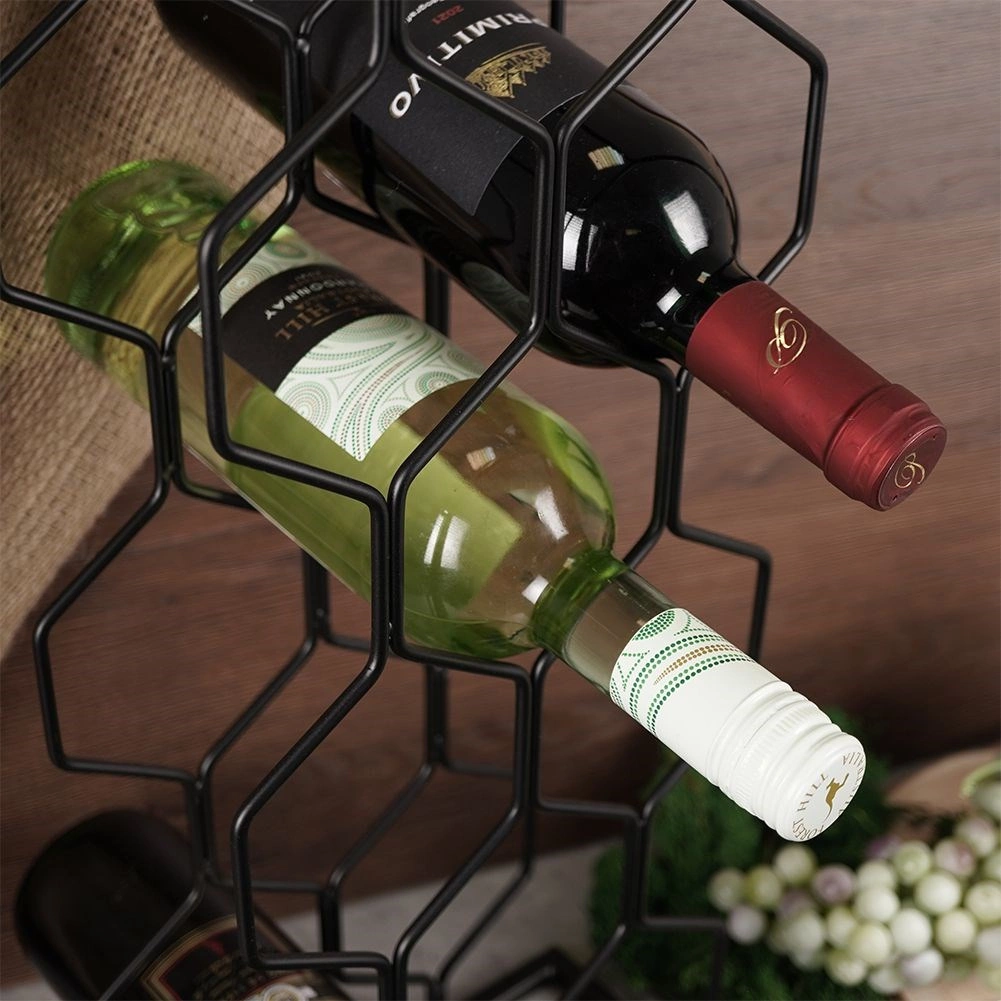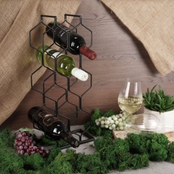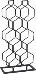 Acest suport modern pentru vin, cu structură hexagonală, găzduiește până la 8 sticle și le păstrează orizontal, pentru ca dopurile să rămână natural umede. Designul minimalist, în negru, se potrivește ușor cu stiluri diverse de interior – de la bucătării moderne la barul de acasă.