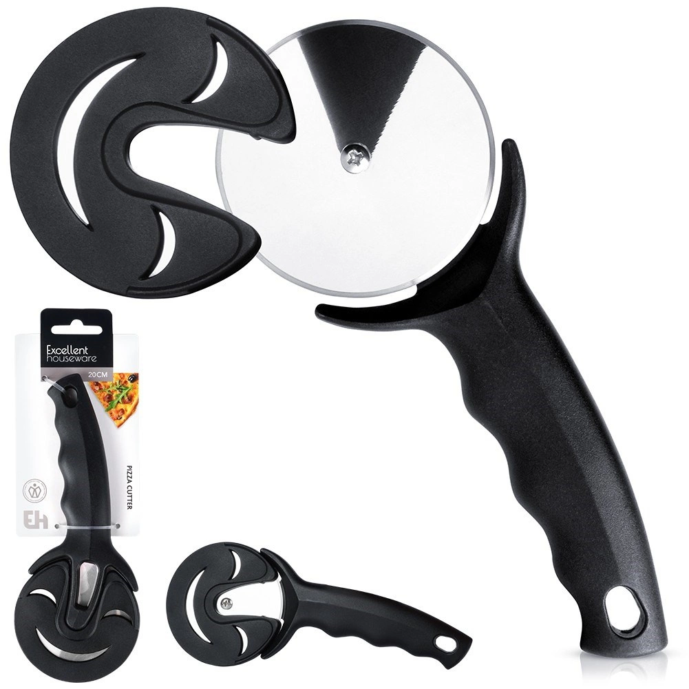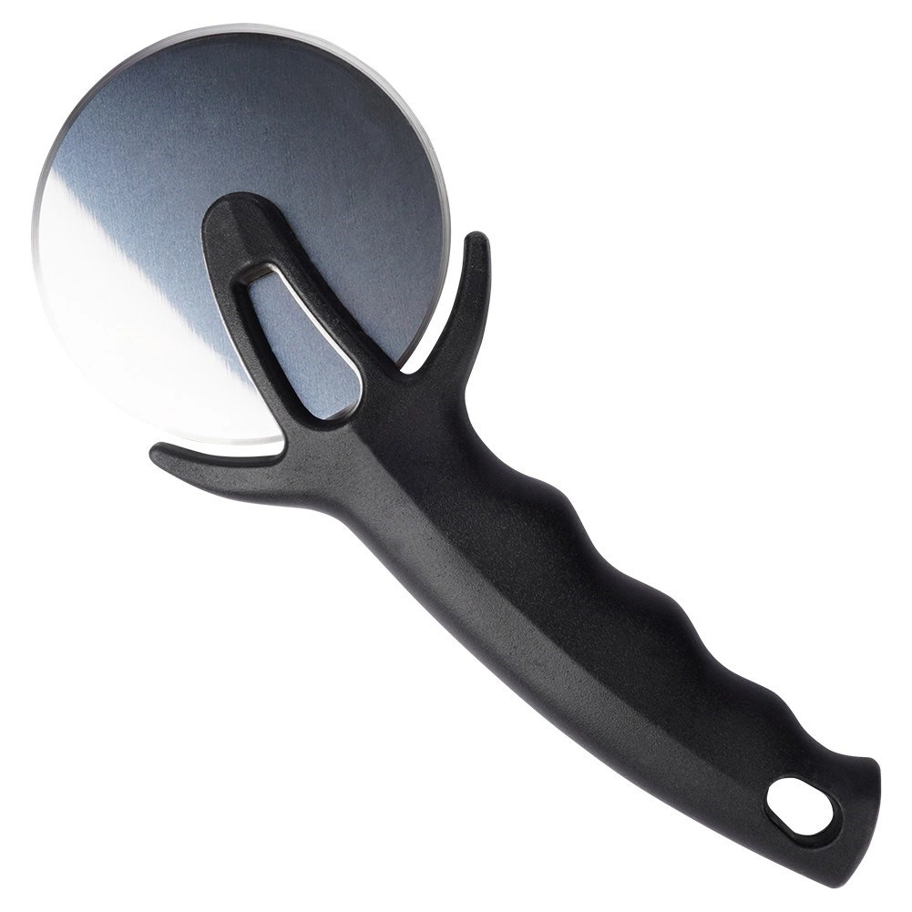 Discul rotativ mare din oțel inoxidabil taie pizza și lipiile în felii uniforme, fără a sfâșia aluatul.