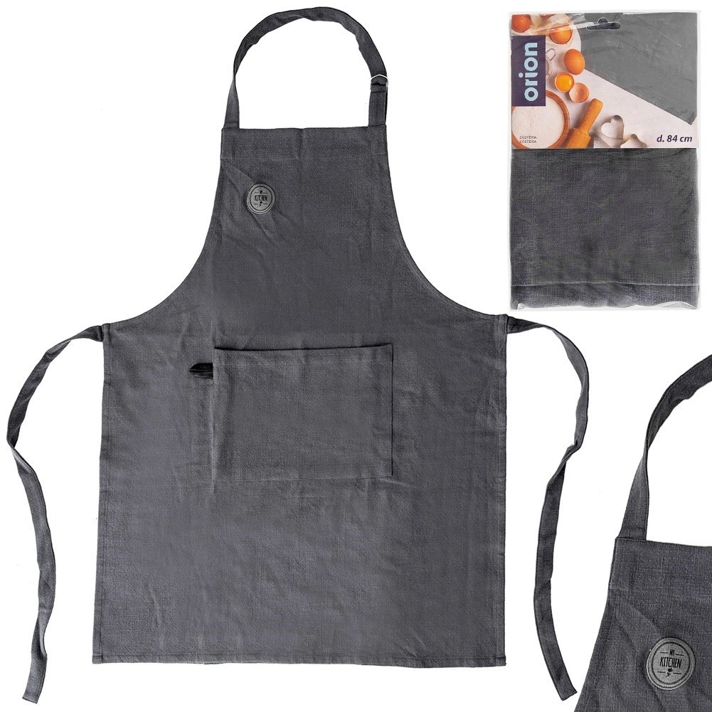 Acest șorț rezistent din bumbac este alegerea ideală pentru gătit zilnic, copt sau pentru lucru în atelier ori studio. Croiala universală se potrivește atât femeilor, cât și bărbaților, iar culoarea gri închis este elegantă și practică. Cureaua reglabilă la gât cu cataramă permite setarea rapidă și comodă a lungimii, în timp ce șnururile lungi din talie asigură o legare sigură.