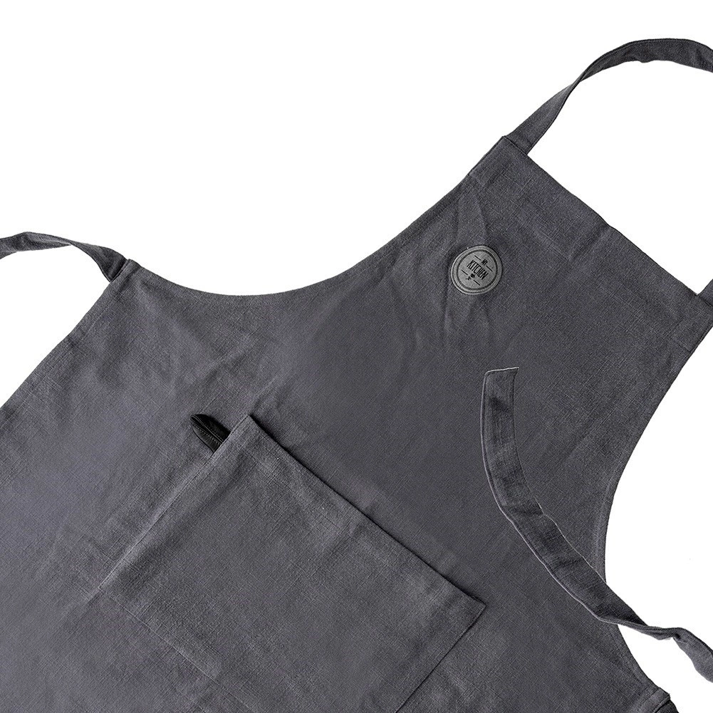 Materialul din bumbac plăcut și durabil, în nuanță de gri închis, se poate spăla la 40 °C, astfel încât șorțul va arăta mult timp ca nou.