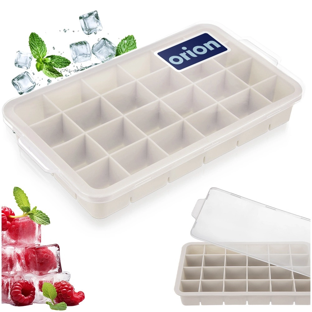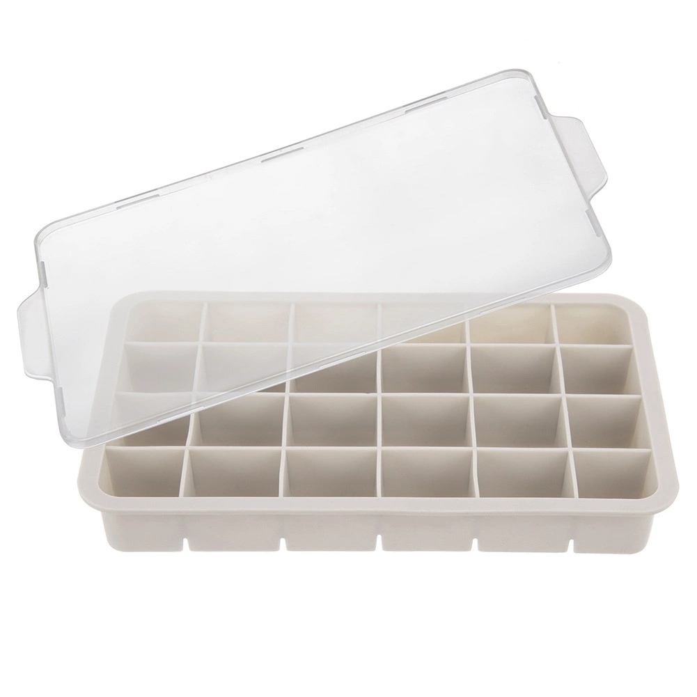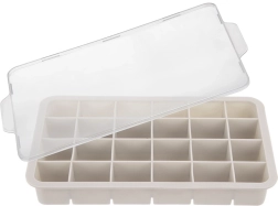 Această tavă bej din silicon pentru gheață, cu capac practic, este un ajutor excelent pentru utilizarea zilnică și pentru petreceri. Produce până la 24 de cuburi regulate cu dimensiunea de aproximativ 3,5 × 3 cm, care răcesc rapid băuturile și le oferă un aspect proaspăt.