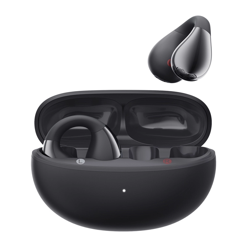 QCY Crossky Clip C30S sunt căști TWS deschise pentru cei care vor să asculte muzică și în același timp să perceapă mediul – ideale pentru alergare, ciclism și plimbări urbane. Confortul este asigurat de clema Anti‑Z cu unghi asimetric de 12°, aliajul cu memorie Ni‑Ti și suprafața din silicon moale. Sunetul este susținut de difuzorul de 10,8 mm cu dublu magnet și algoritmul Bass Enhancement, cu suport pentru codec-ul LDAC și certificare Hi‑Res Audio Wireless.