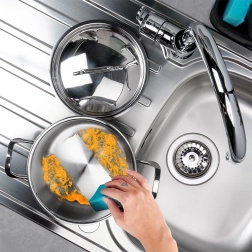 Pereții groși din oțel inoxidabil 18/10 de calitate asigură o durată de viață îndelungată, curățare ușoară și un aspect elegant, cu finisaj mat și bandă lucioasă.