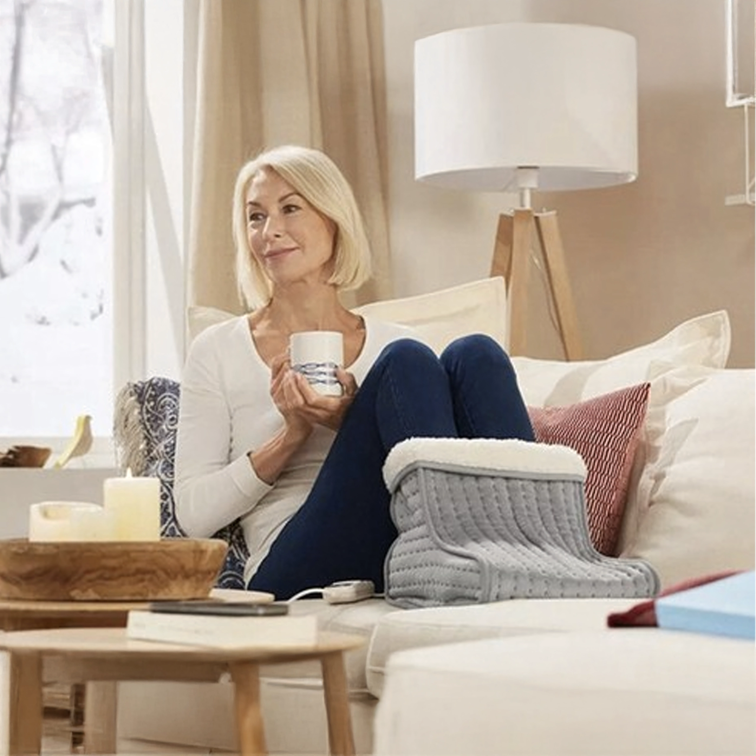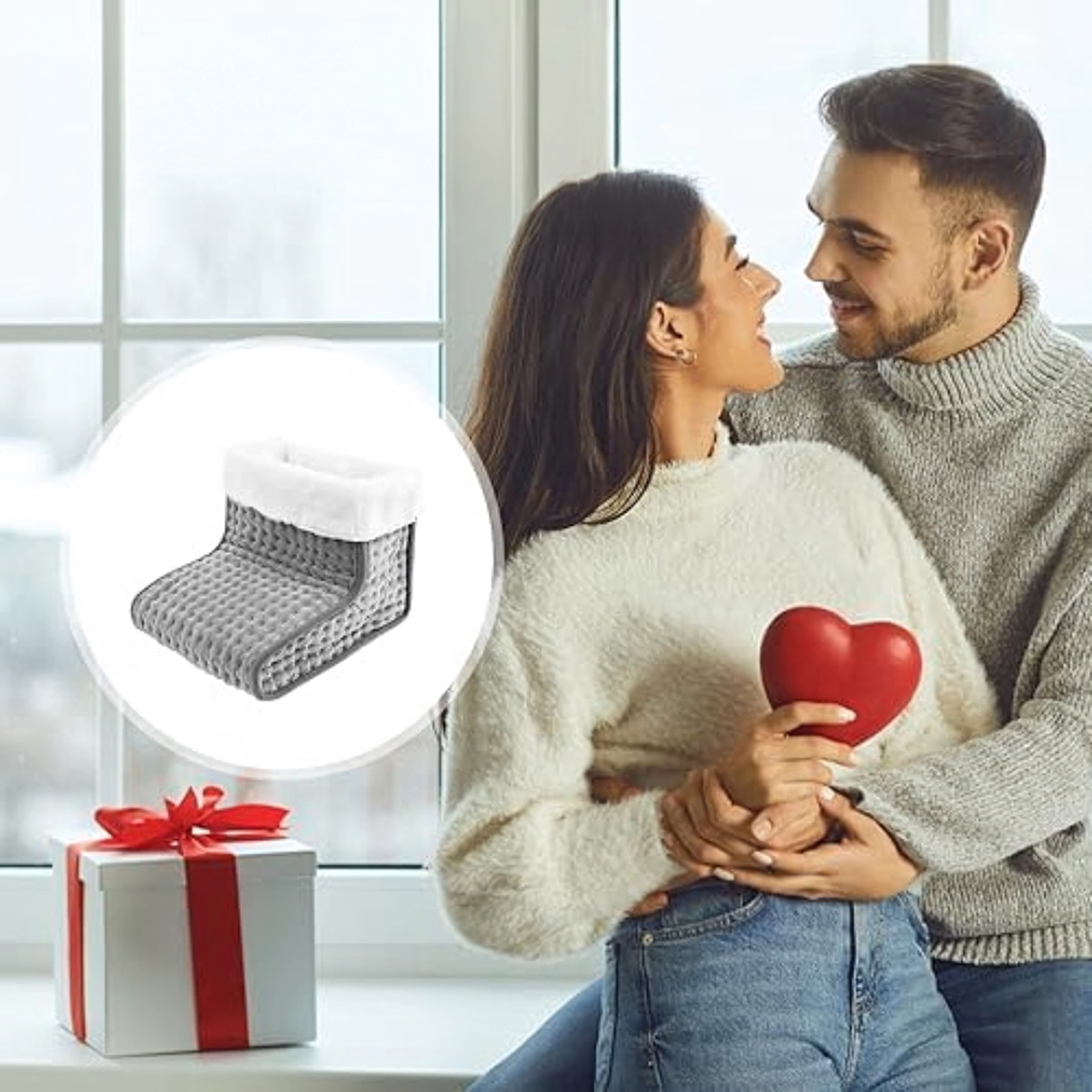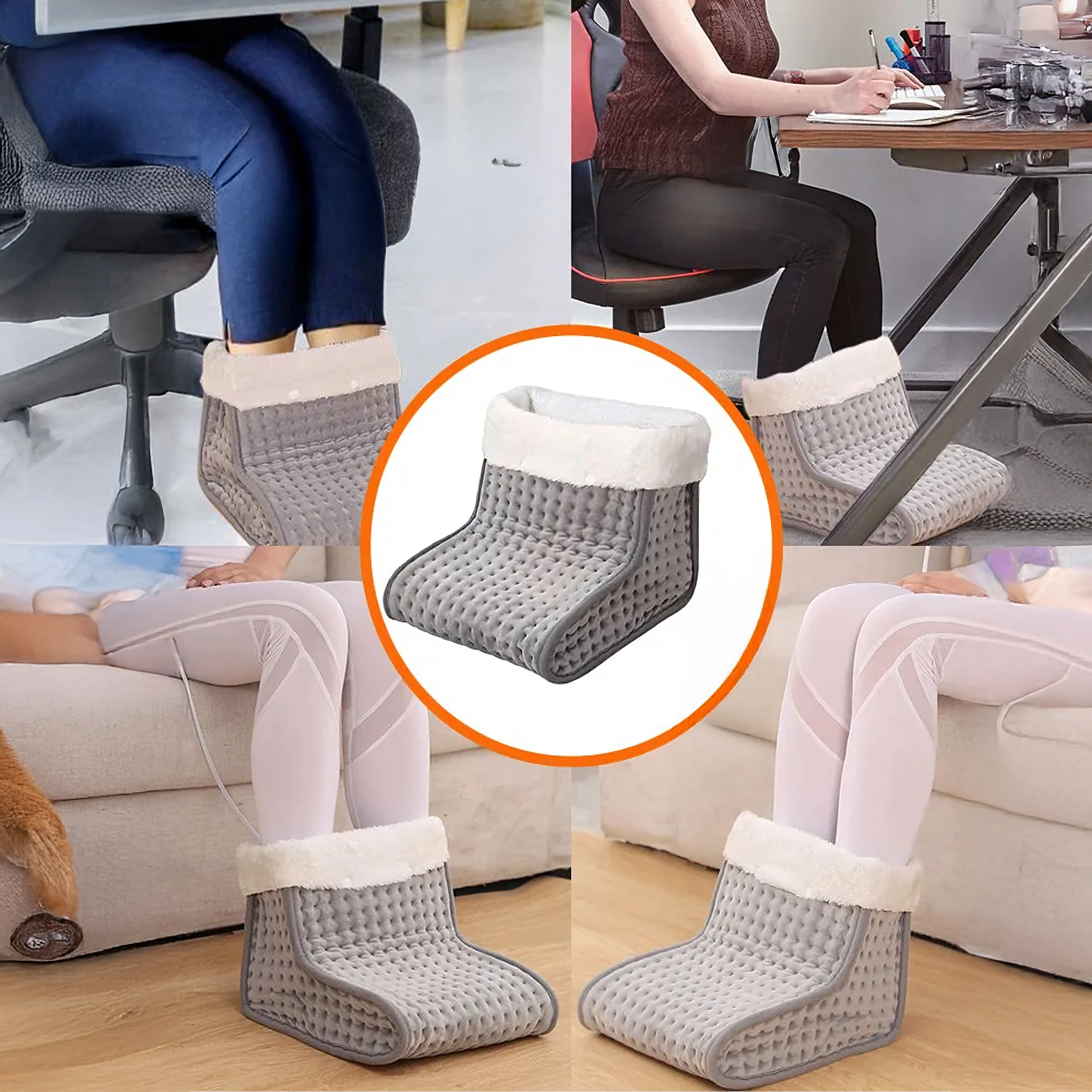 Designul tip „boot” spațios, cu căptușeală moale din fleece, învăluie picioarele și asigură o căldură uniformă și relaxantă, fie pe canapea, fie la birou.