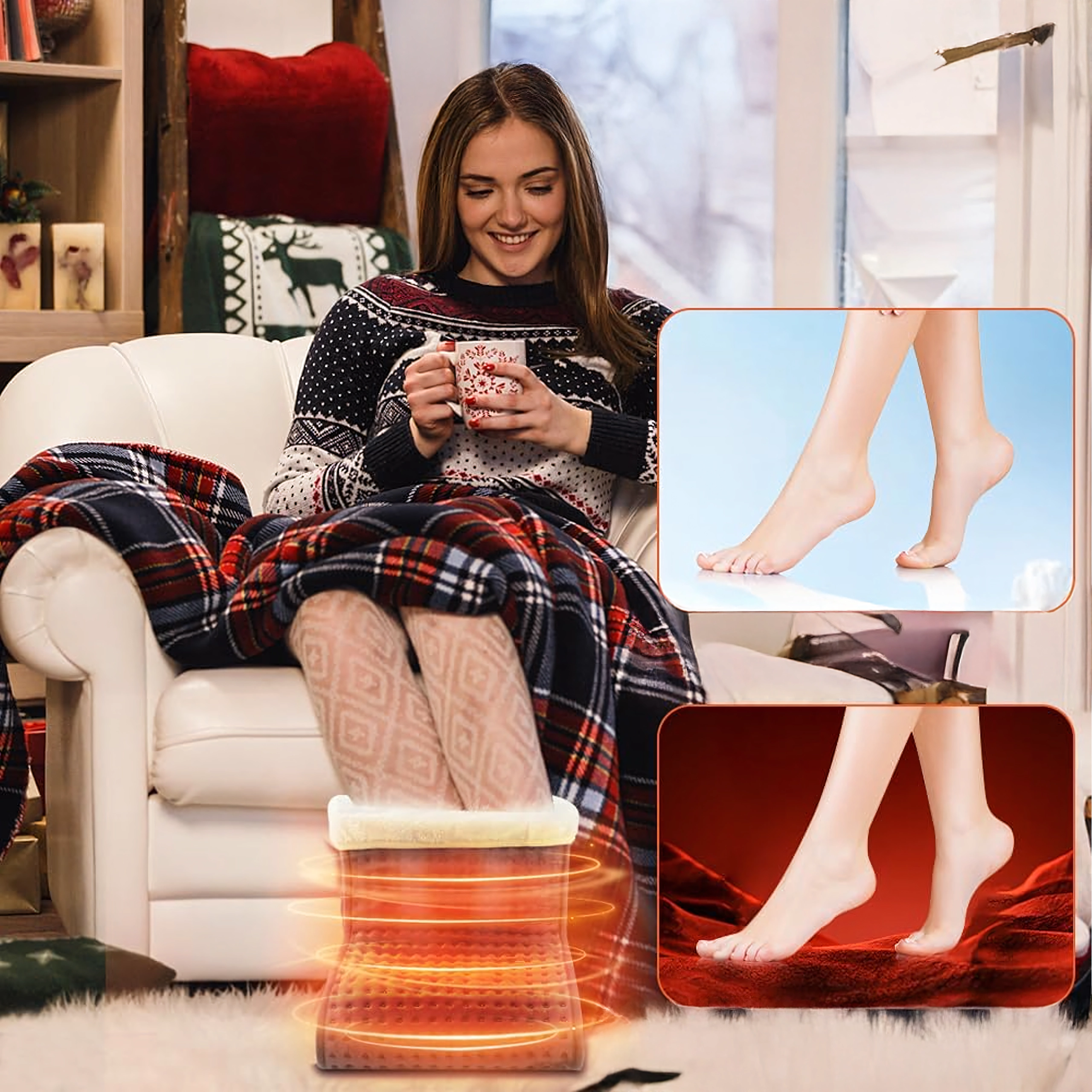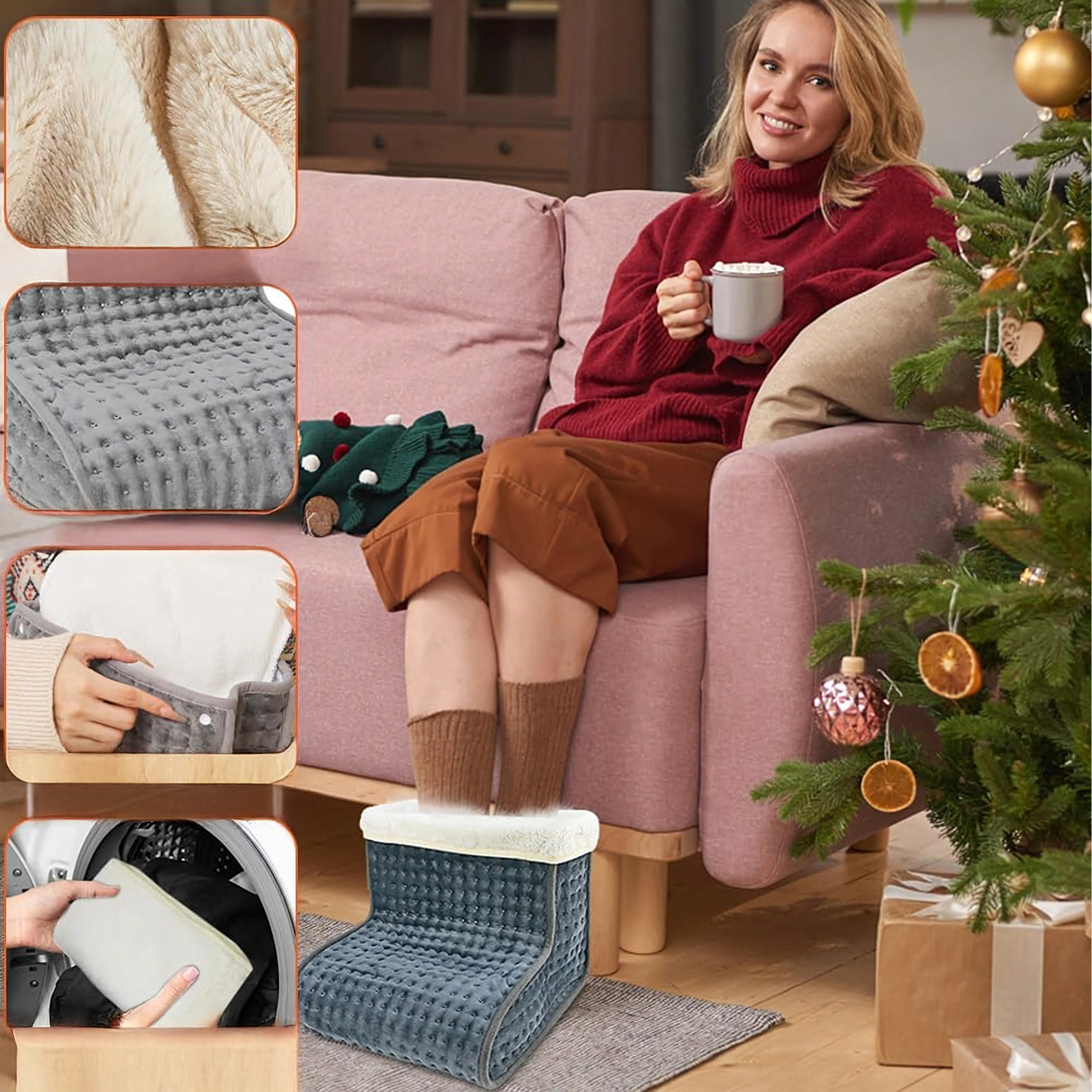 Încălzitorul electric pentru picioare este conceput pentru confort maxim în timpul relaxării la TV, la birou sau pe canapea. Interiorul plușat moale, cu căptușeală plăcută, distribuie uniform căldura și ajută la încălzirea rapidă a tălpilor reci. Telecomanda intuitivă cu afișaj permite setarea precisă a temperaturii și a duratei de încălzire pentru o utilizare sigură și fără griji.