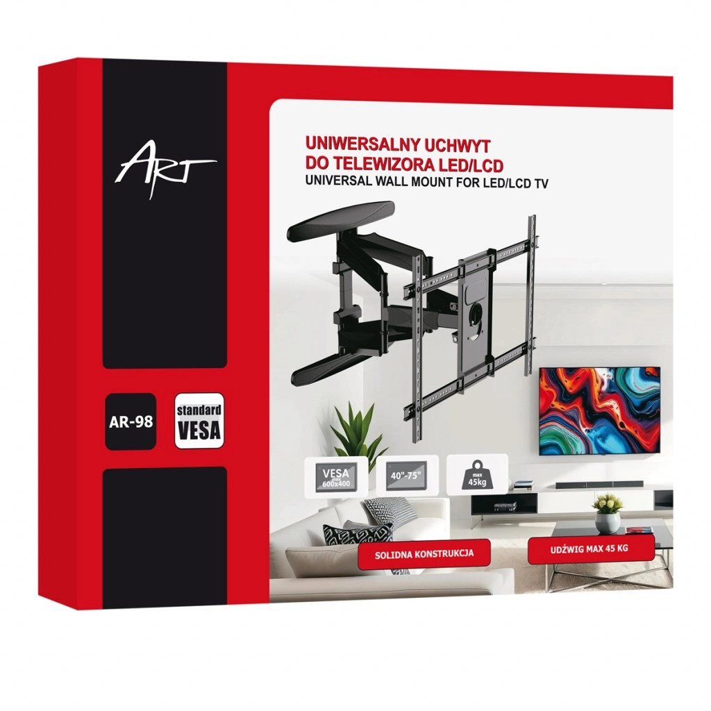 Acest suport articulat robust pentru TV este conceput pentru ecrane LCD/LED moderne cu diagonală de 40–75". Datorită capacității ridicate de 45 kg și suportului extins pentru standardele VESA 200×200 până la 600×400, susține fiabil majoritatea televizoarelor mărcilor de top. Construcția bine gândită permite reglarea comodă a înclinării, rotației și extensiei pentru un unghi de vizionare perfect în orice încăpere.