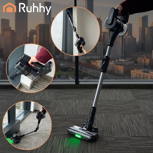 Ruhhy LunPro aduce curățenia modernă fără cablu: performanță constantă a motorului BLDC de 400 W fără pierderi, funcționare silențioasă și durată lungă de viață. Bateria Li‑Ion de 25,9 V asigură în modul eco până la 52 de minute de curățenie, astfel că poți îngriji întreaga locuință fără întreruperi. Iluminarea LED de pe duza de podea evidențiază praful și firimiturile chiar și în colțurile întunecate.