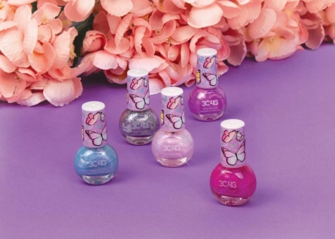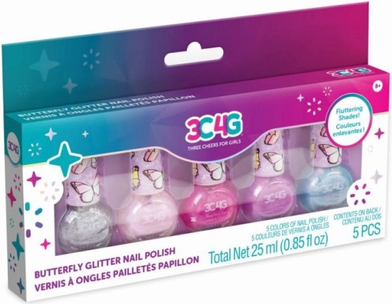 Visezi la unghii fabuloase pentru micuța ta fashionistă? Setul de lacuri de unghii Butterfly este alegerea perfectă! Acest set atractiv include cinci lacuri de unghii încântătoare, fiecare cu un volum de 5 ml. Dintre acestea, trei lacuri sunt special concepute pentru a străluci, cu sclipici în formă de fluturi, aducând un plus de magie fiecărui look.