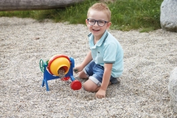 Copiii pot amesteca cu adevărat conținutul rotind tamburul cu ajutorul manivelei laterale – joc realist ca pe șantier.
