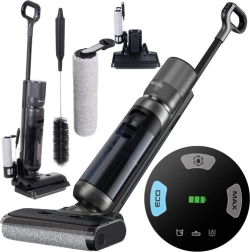 Motorul fără perii de 200 W și puterea de aspirare de până la 16 kPa fac față prafului, firimiturilor, părului și lichidelor vărsate. Două moduri ECO/MAX vă permit să adaptați puterea tipului de murdărie și să obțineți până la 40 de minute de funcționare. Modul inteligent de standby economisește energie – când lăsați aspiratorul pentru scurt timp, se pune automat pe pauză și se reactivează imediat când îl apucați.