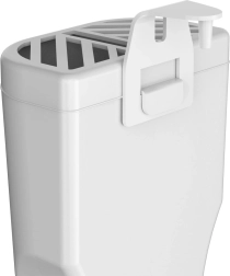 Carcasa suplă, în culoare alb mat, economisește spațiu și nu perturbă aspectul interiorului. Volumul de 450 ml ajunge pentru multe ore de funcționare.
