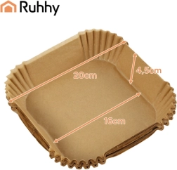 Păstrează friteuza cu aer cald impecabilă cu inserturile de hârtie RUHHY. Setul include 100 de inserturi de unică folosință din hârtie siliconată pentru coacere antiaderentă, cu rezistență până la 230 °C și formă pătrată universală de 20 × 20 × 4,5 cm (bază inferioară 16 × 16 cm). Mai puțină curățenie, mai mult gust – ideal pentru cartofi prăjiți, carne și produse de patiserie.