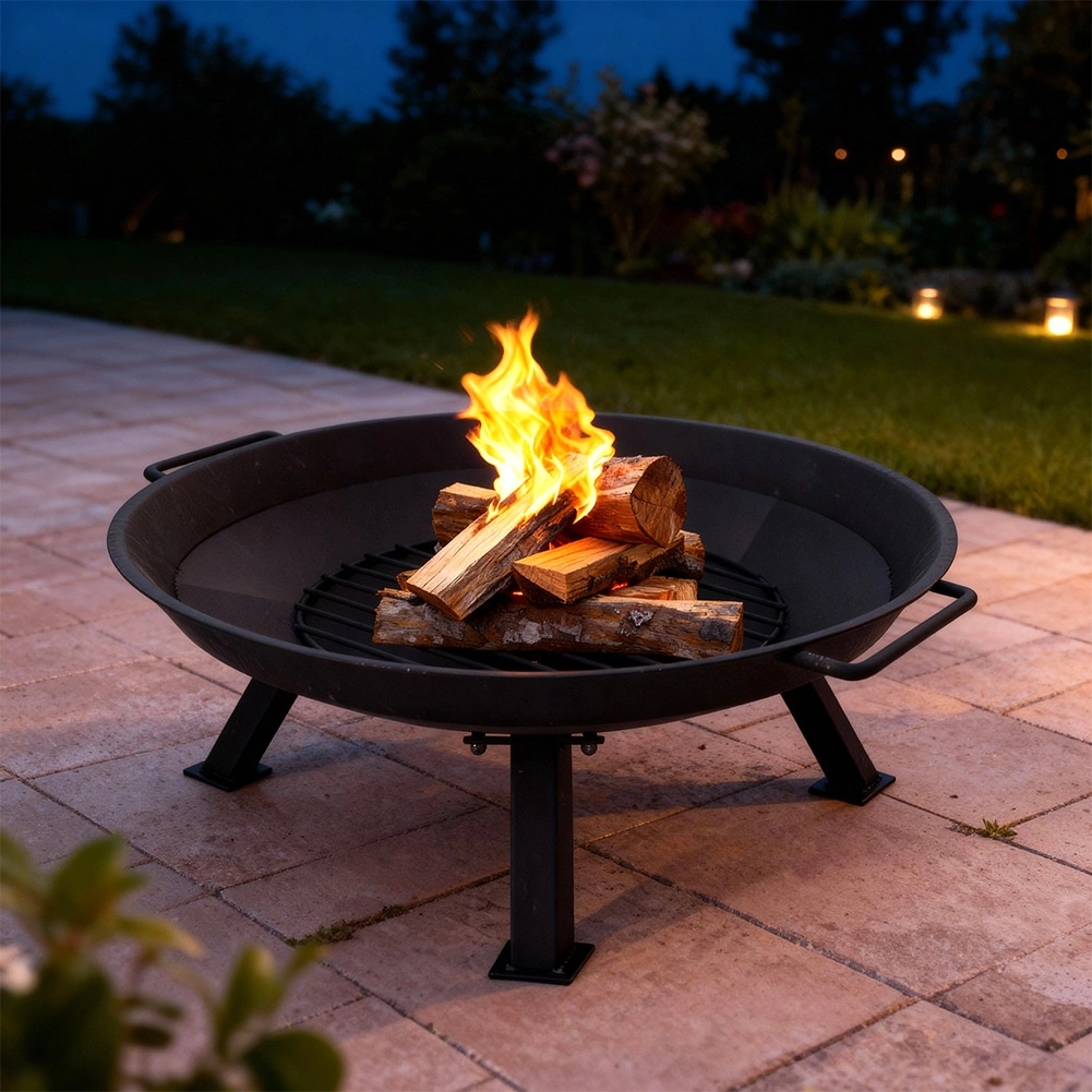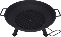 Creați o atmosferă magică acasă cu acest focar metalic rezistent, cu diametrul de 56 cm. Vasul larg asigură circulație eficientă a aerului și ardere uniformă, în timp ce baza stabilă oferă siguranță atât pe gazon, cât și pe terasă. Două mânere laterale facilitează mutarea focarului acolo unde aveți nevoie de căldură și confort.