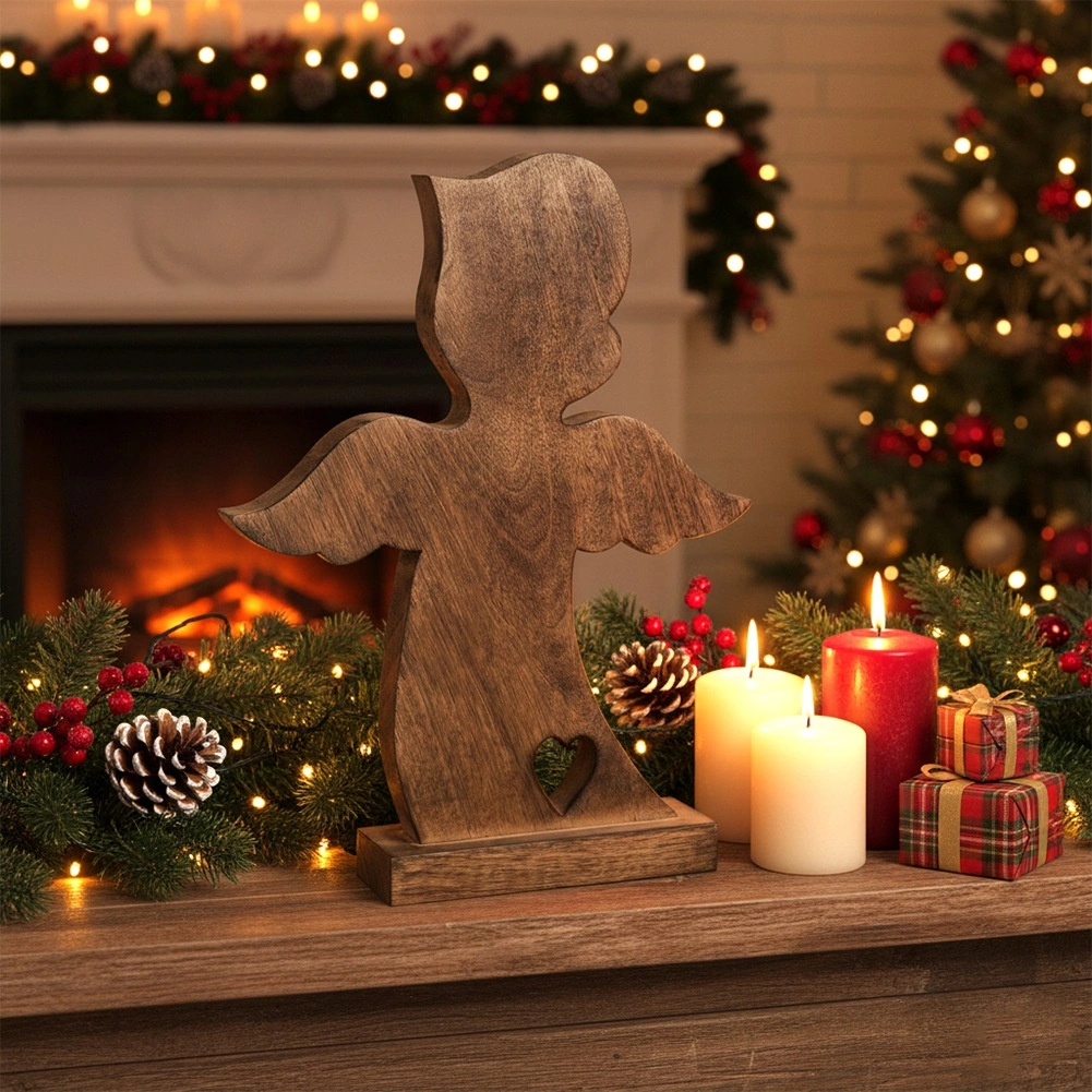 Siluita discretă a îngerului, cu decupaj în formă de inimă, aduce interiorului o atmosferă caldă și festivă, dar arată minunat și în afara sezonului de iarnă.