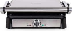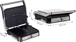 Regulatorul rotativ permite setarea precisă a temperaturii până la 220 °C, iar indicatoarele de alimentare și de pregătire semnalizează momentul optim pentru a introduce ingredientele. Capacul complet rabatabil la 180° transformă grătarul într-o suprafață mare, dublă, de 29,5 × 23 cm, astfel încât puteți servi cu ușurință toată familia.