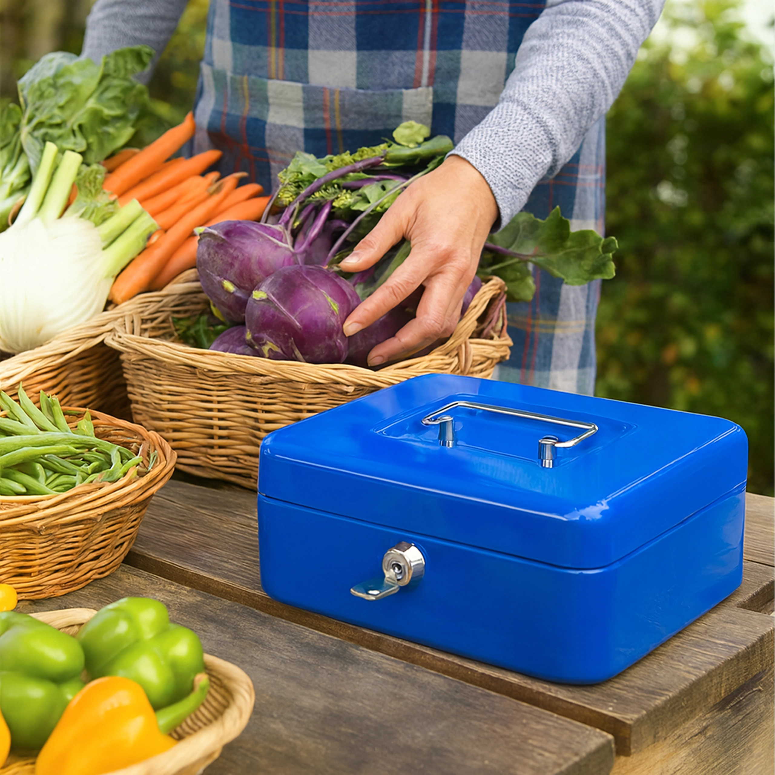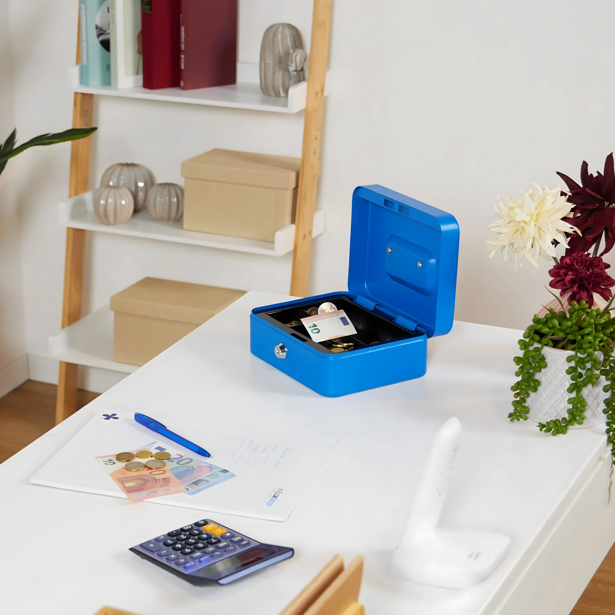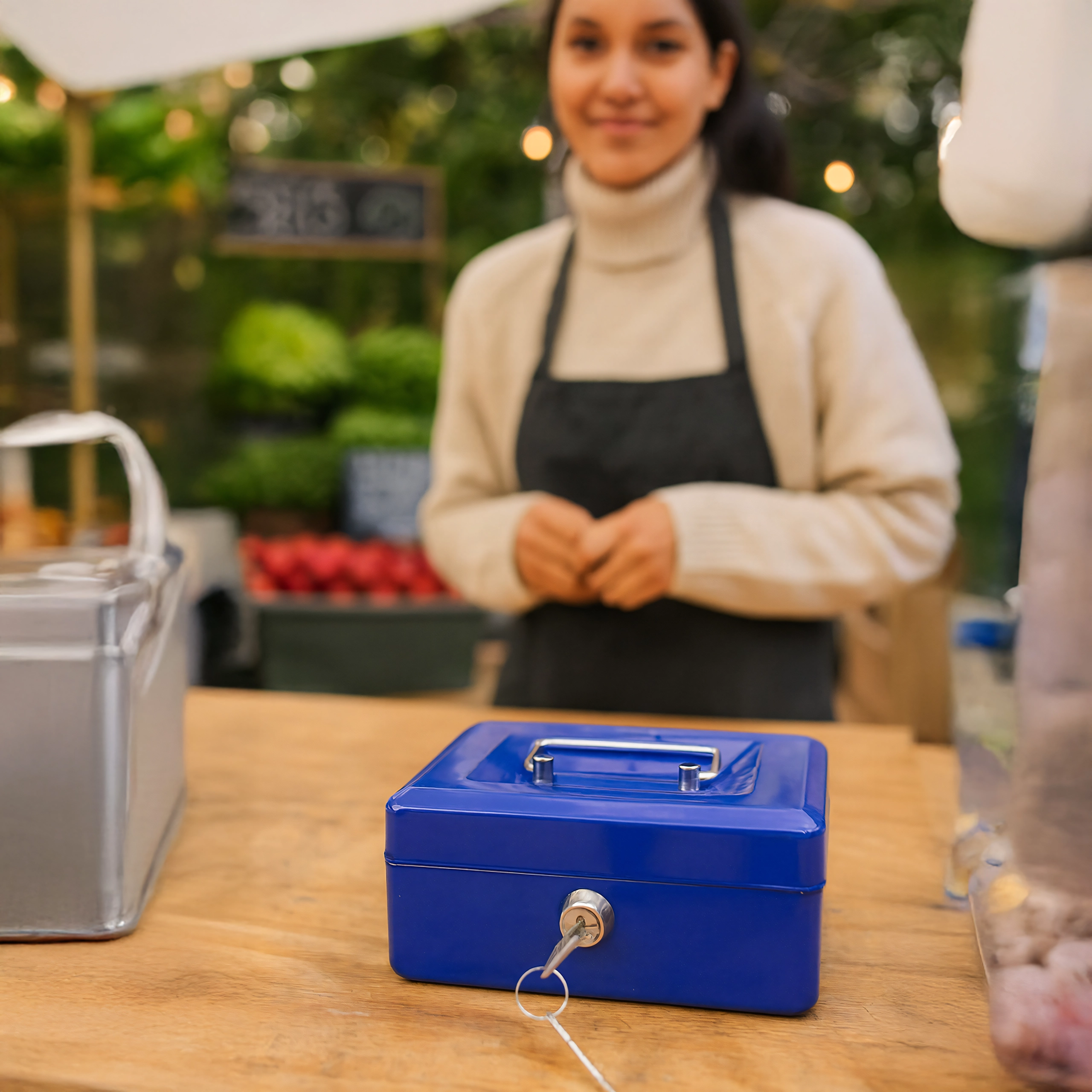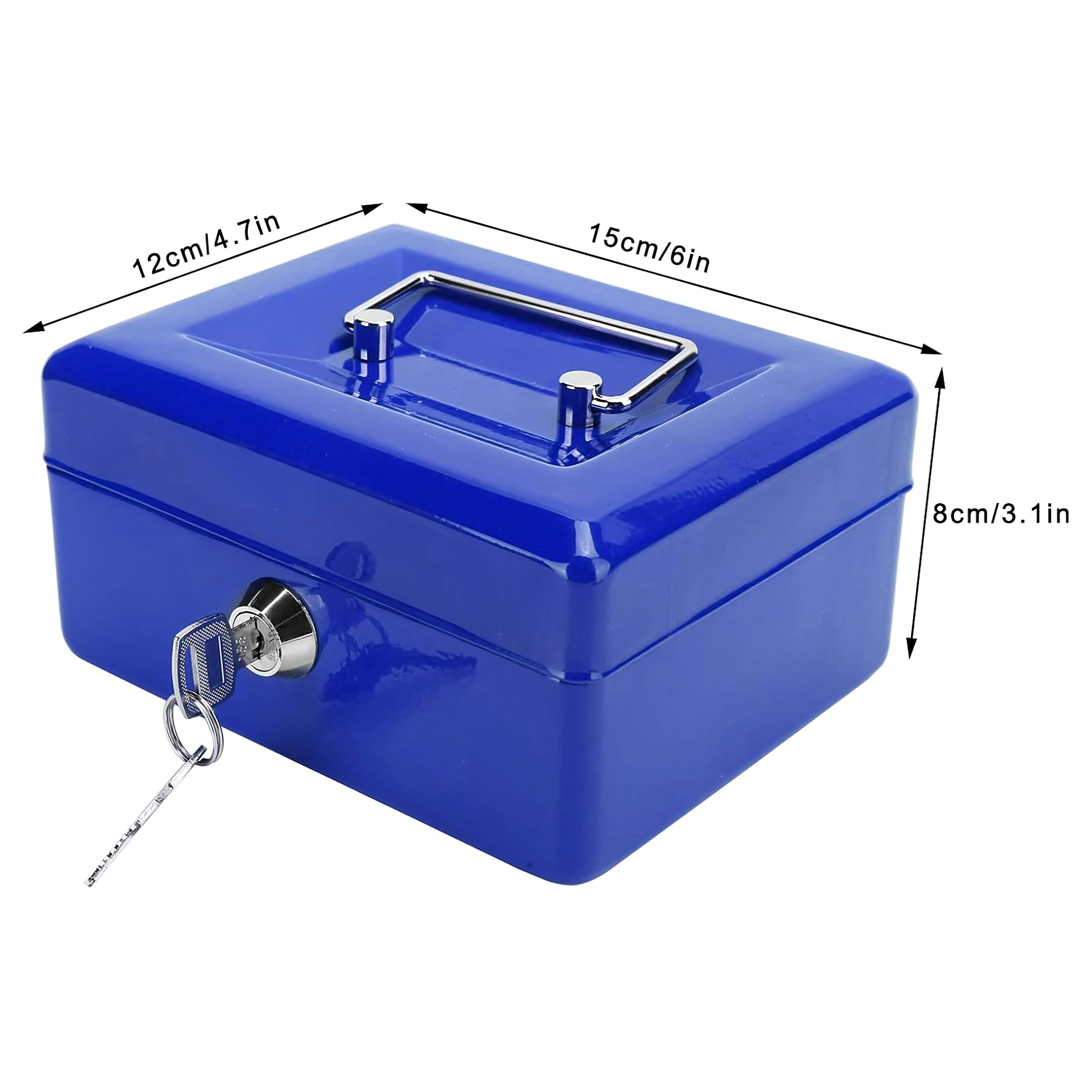 Cutie metalică de bani compactă, cu închidere pe cheie, păstrează în siguranță banii, bijuteriile sau actele. În interior are o tavă detașabilă cu compartimente clare pentru monede, pentru o organizare rapidă. Datorită construcției metalice robuste, mânerului practic și încuietorii fiabile, este ideală pentru casă, birou, târguri și vânzare la stand. Execuția metalică rezistentă, încuietoarea cu cheie și tava pentru monede asigură ordine și siguranță atât în deplasare, cât și pe loc.