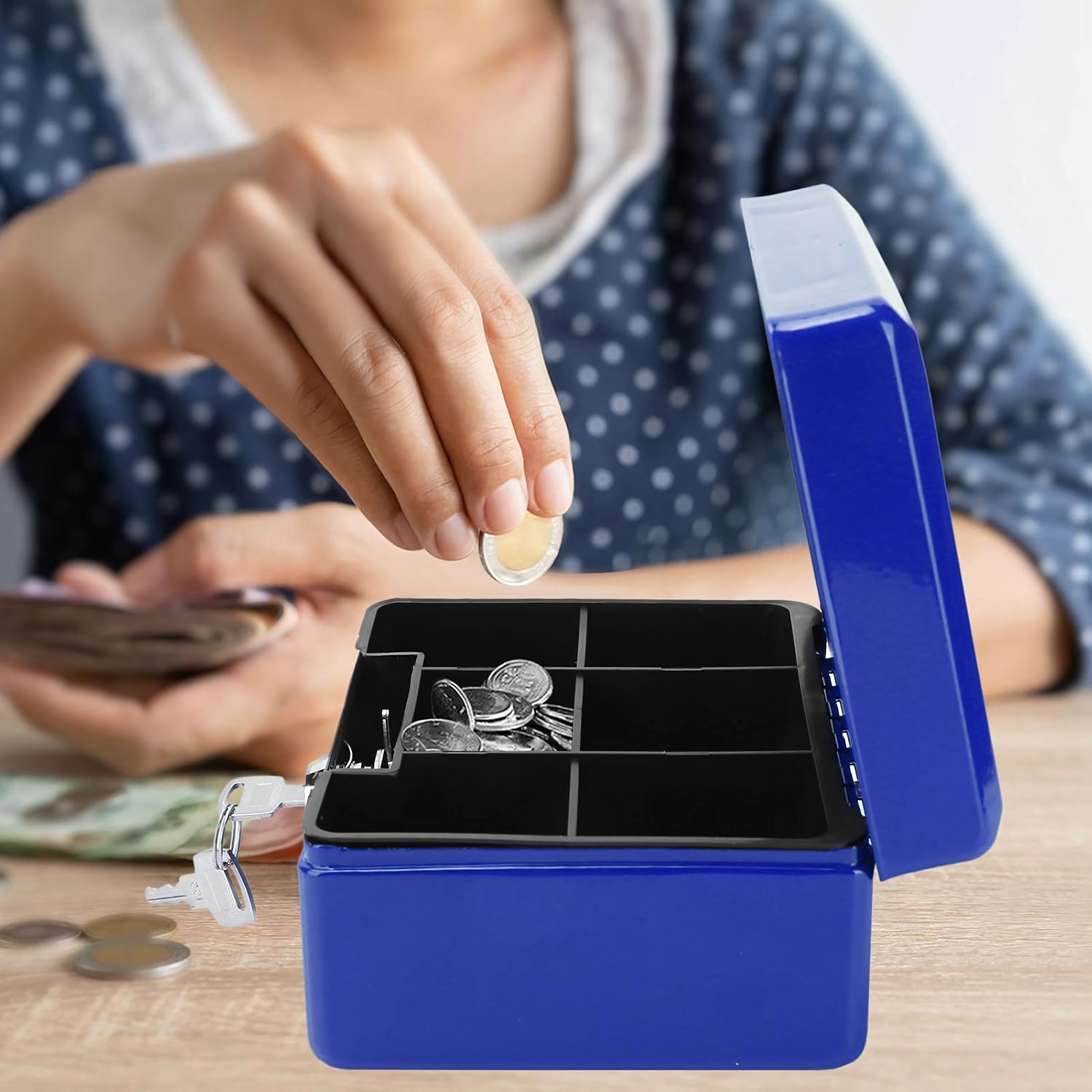 - Ordine și claritate: insertul cu mai multe compartimente facilitează sortarea monedelor și a mărunțișurilor.