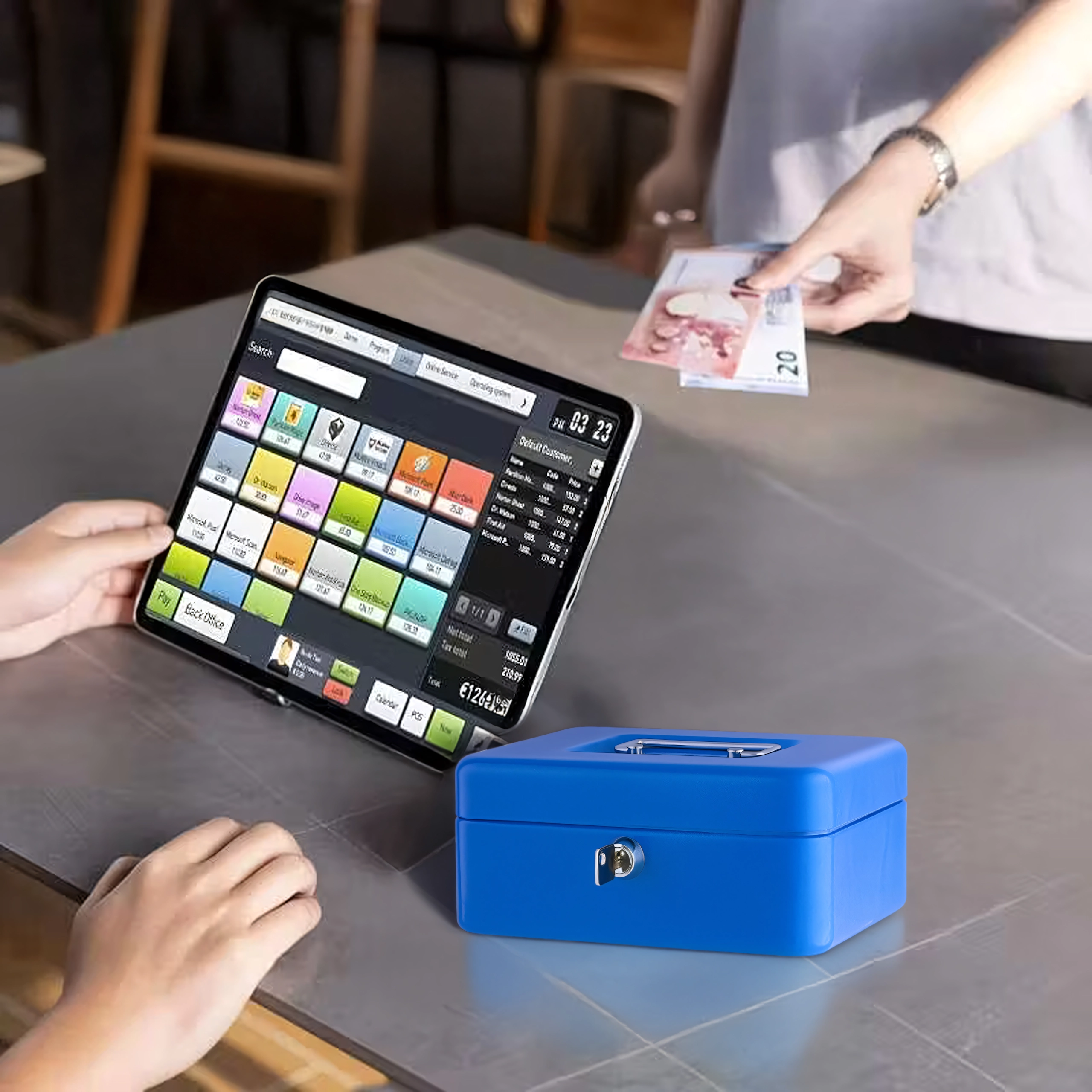 Căutați o soluție simplă și sigură pentru păstrarea numerarului, monedelor, bancnotelor sau documentelor mici? Această cutie metalică de bani cu cheie oferă carcasă solidă, închidere fiabilă și un interior organizat, cu insert detașabil pentru monede. Este excelentă pentru uz casnic, birou, recepție și pentru vânzare mobilă.