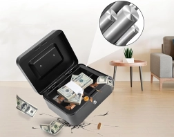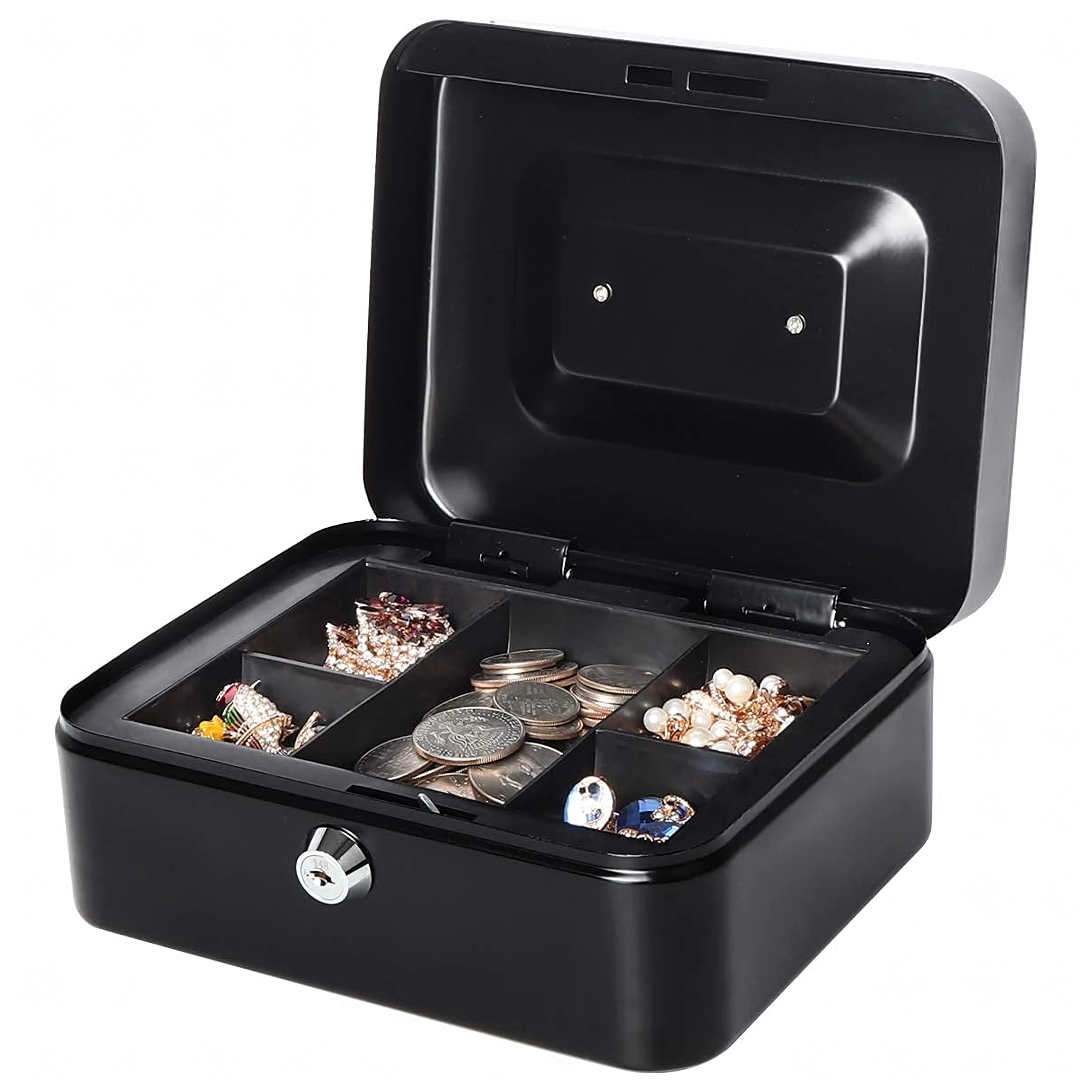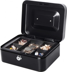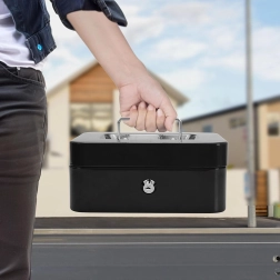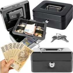Casetă compactă de numerar din metal cu încuietoare cu cheie, ideală pentru depozitarea sigură a numerarului, a chitanțelor, a monedelor și bancnotelor și a documentelor mici. Datorită organizatorului detașabil cu compartimente vei sorta ușor mărunțișul, iar construcția metalică solidă și mânerul practic asigură transport comod și rezistență în utilizarea zilnică.