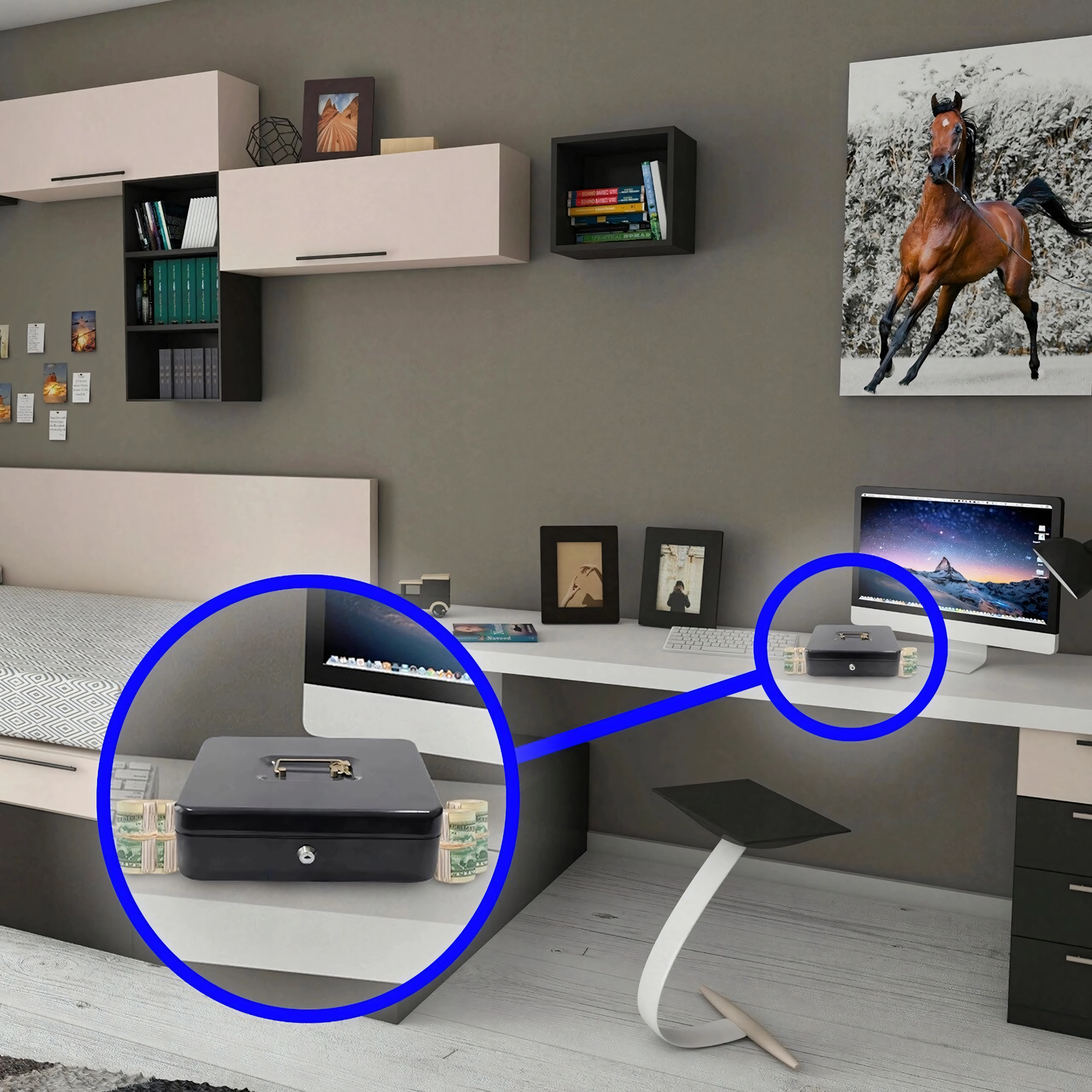 Această casetă robustă pentru bani este o soluție de încredere pentru locuință, birou și puncte de vânzare mici. Oferă securizare mecanică cu cheie și o compartimentare internă clară pentru lucru rapid cu numerarul. Dimensiunile compacte permit depozitarea ușoară în sertar sau dulap și, în același timp, oferă suficient spațiu pentru monede, bancnote și obiecte mici de valoare.