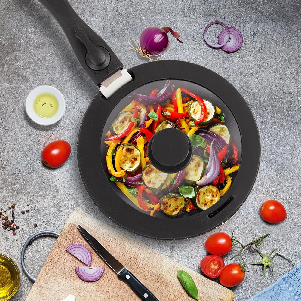 Profilarea laterală sofisticată se potrivește perfect pe oale și tigăi cu mâner detașabil, astfel încât veți putea folosi capacul atât pe plită, cât și în cuptor până la 220 °C. Marginea din silicon protejează marginile vaselor, amortizează șocurile și îmbunătățește stabilitatea.