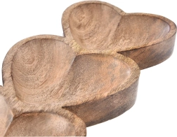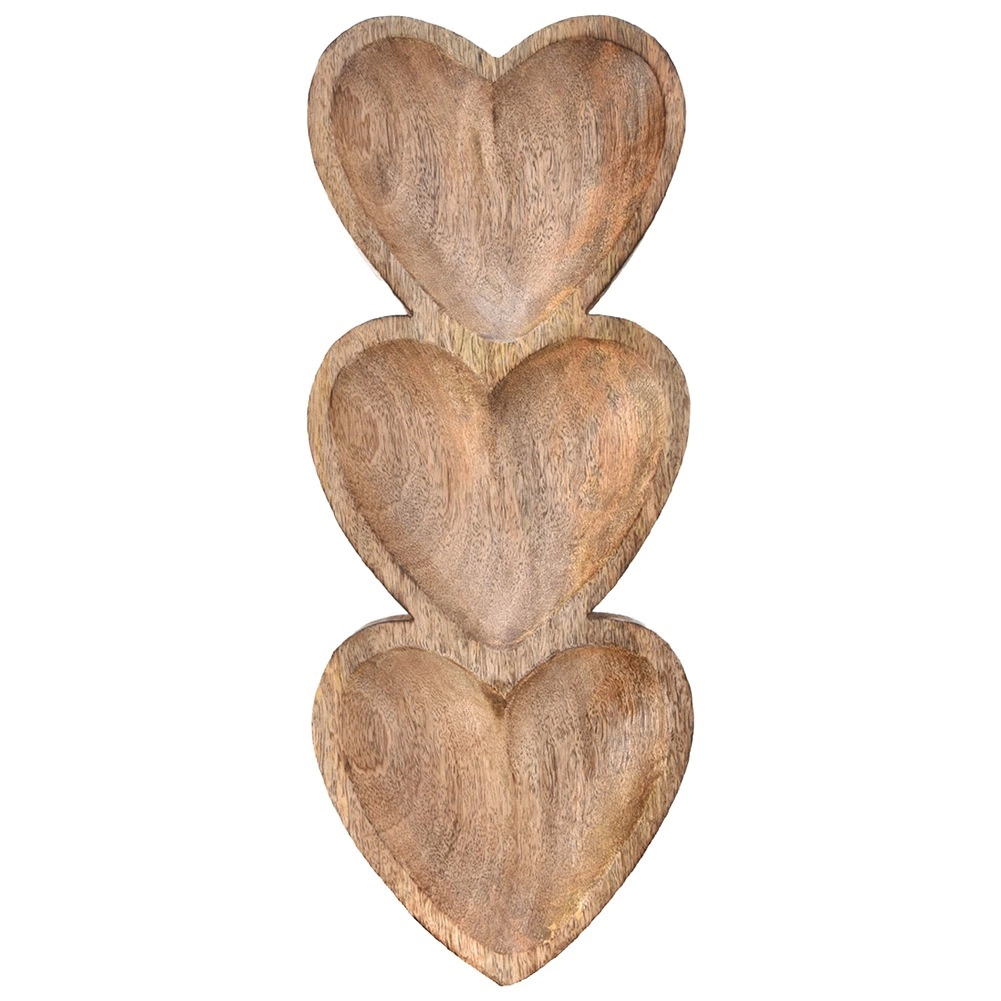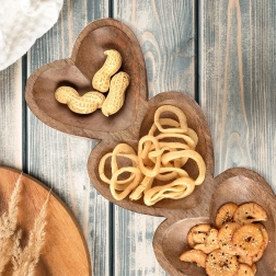 Tava alungită, cu dimensiunile 40 × 16 × 3,5 cm, aduce un design original cu trei boluri în formă de inimă dintr-o singură piesă. Fiecare inimă are aproximativ 16 × 16 cm, permițând separarea clară a diferitelor bunătăți – de la tapas și sosuri până la praline și fructe uscate.