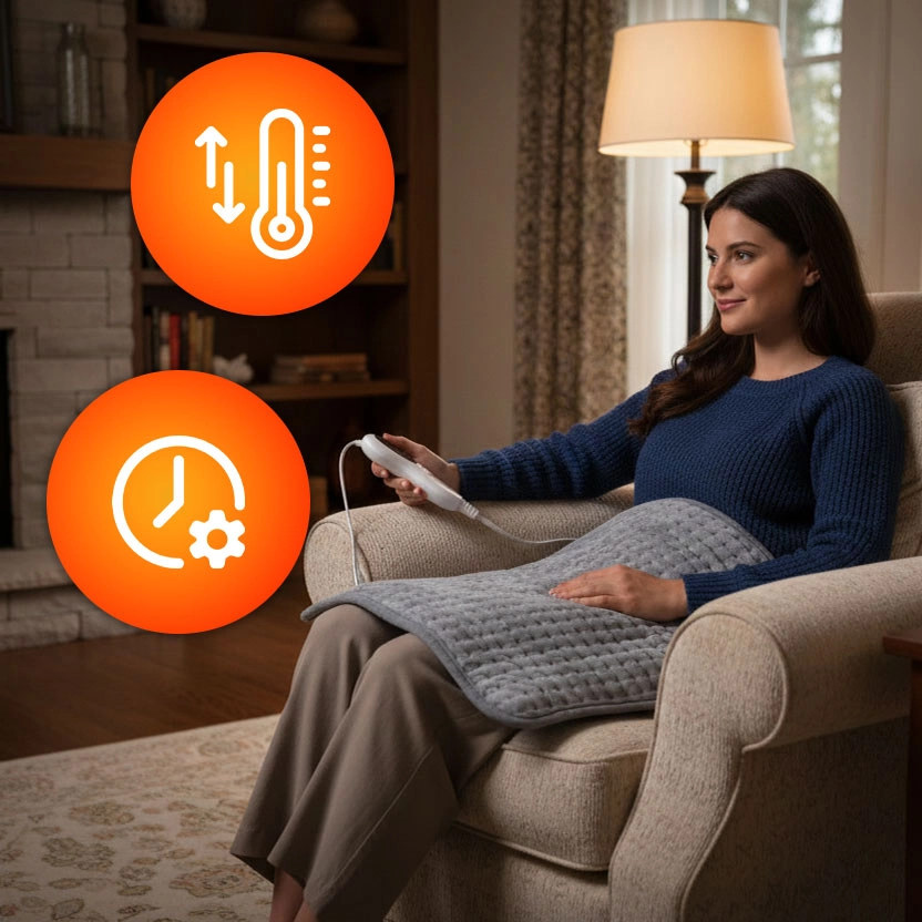 Personalizează intensitatea căldurii (30–48 °C) și alege durata de funcționare de 45, 90 sau 120 de minute – apoi dispozitivul se oprește automat.