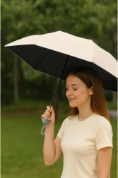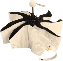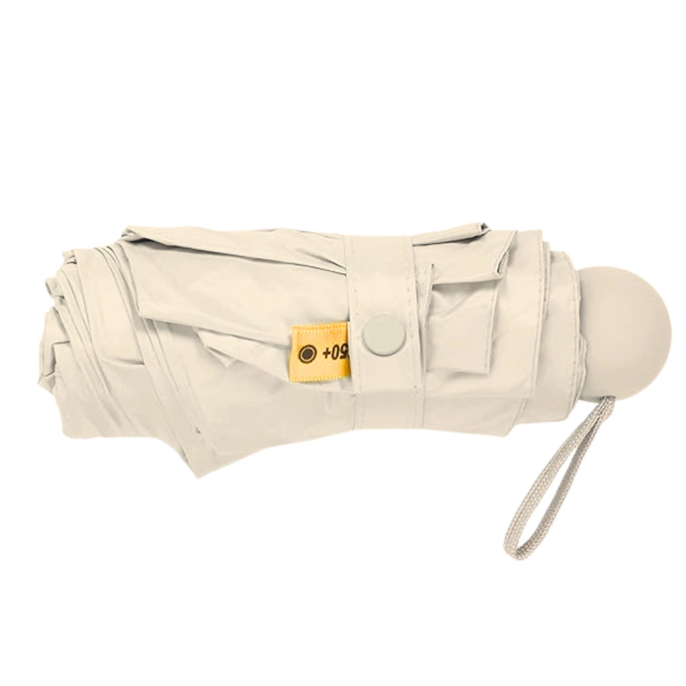 Umbrela pliabilă bej, stilată, este partenerul ideal pentru vreme schimbătoare. Datorită finisajului cu UPF 50+, blochează eficient radiațiile UV nocive, protejând nu doar pe ploaie, ci și în soare puternic. Dimensiunile compacte și construcția ușoară asigură că o poți depozita cu ușurință în geantă, rucsac sau în buzunarul unei geci mai mari.