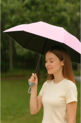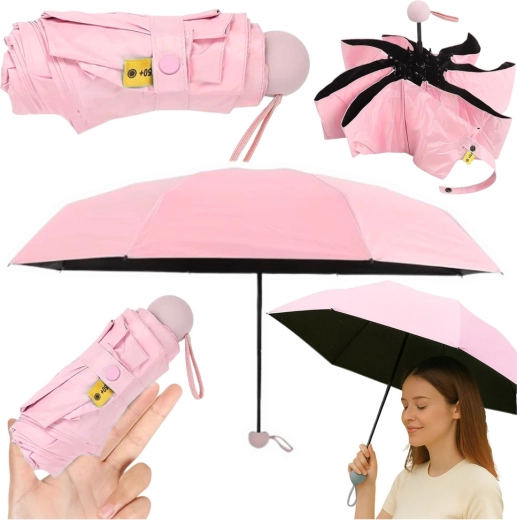 Umbrela de buzunar stilată, în nuanță de roz pal, este alegerea perfectă pentru oraș și călătorii. Construcția pliabilă, ușoară, încape într-o poșetă mică, în timp ce materialul textil din poliester de calitate, cu UPF 50+, blochează în mod fiabil razele solare și protejează totodată de ploaie. Stratul interior negru ajută la îmbunătățirea protecției UV și reduce orbirea.