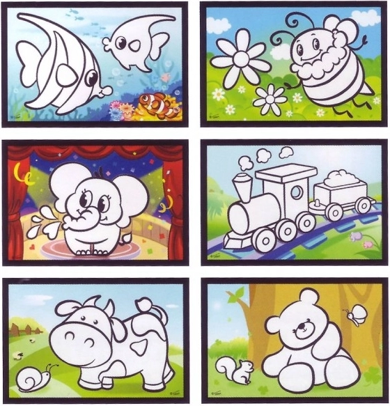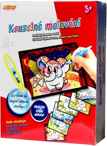 Acest set creativ îi va încânta atât pe micii artiști, cât și pe părinți. Datorită stratului alb special de pe carduri, culorile apar la contactul cu apa și dispar din nou după uscare. Astfel, activitatea este fără vopsele, fără murdărie și ideală acasă sau în călătorii.
