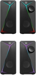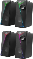 Bucură-te de sunet stereo echilibrat într-o carcasă elegantă și compactă. Aceste boxe de birou 2.0 sunt excelente pentru ascultat muzică zilnic, gaming și vizionare de filme. Puterea de 6 W asigură suficient volum într-o cameră mică, iar designul modern cu iluminare RGB LED completează aspectul biroului tău.