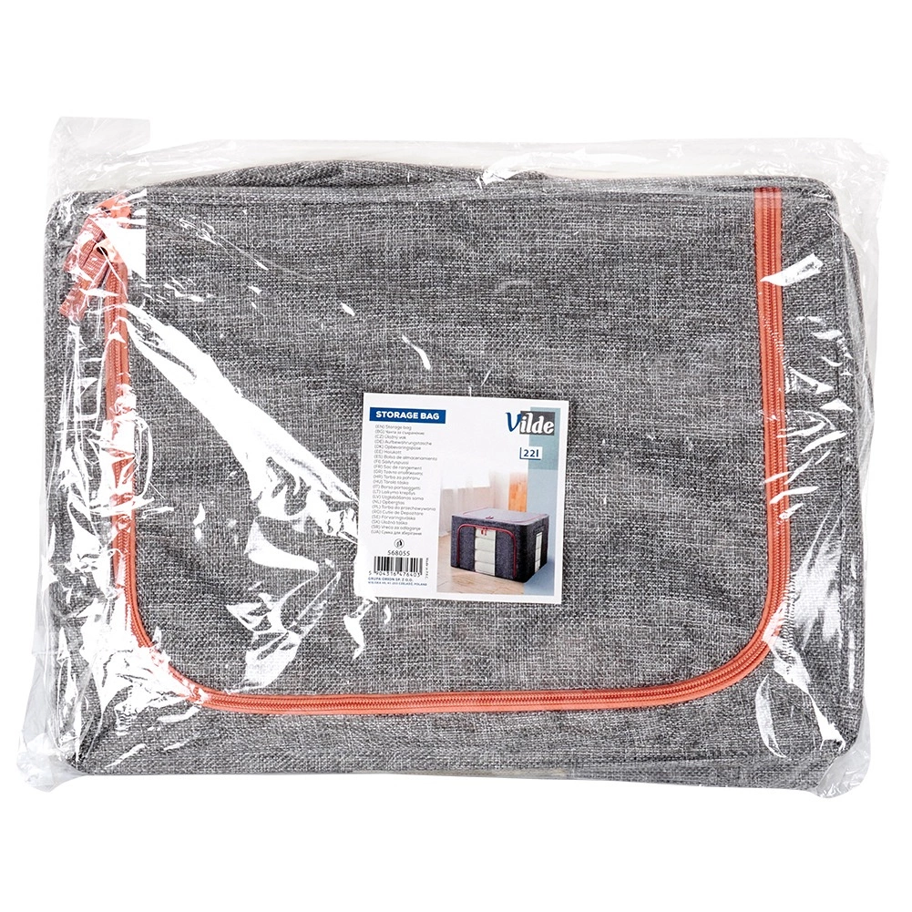 Husă de depozitare practică pentru lenjerie de pat, pături, perne și îmbrăcăminte, cu un volum de 22 l, protejează lucrurile împotriva umidității, prafului și moliilor. Datorită fermoarelor superioare și frontale, ferestrei transparente, construcției robuste și celor două mânere, oferă acces ușor, vizibilitate și transport confortabil.