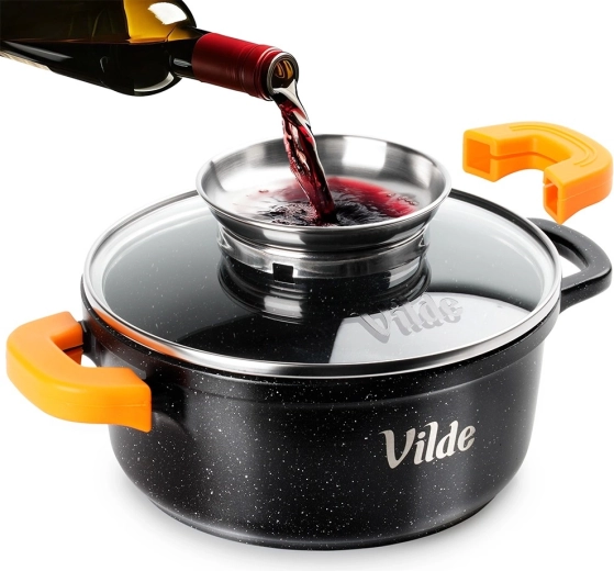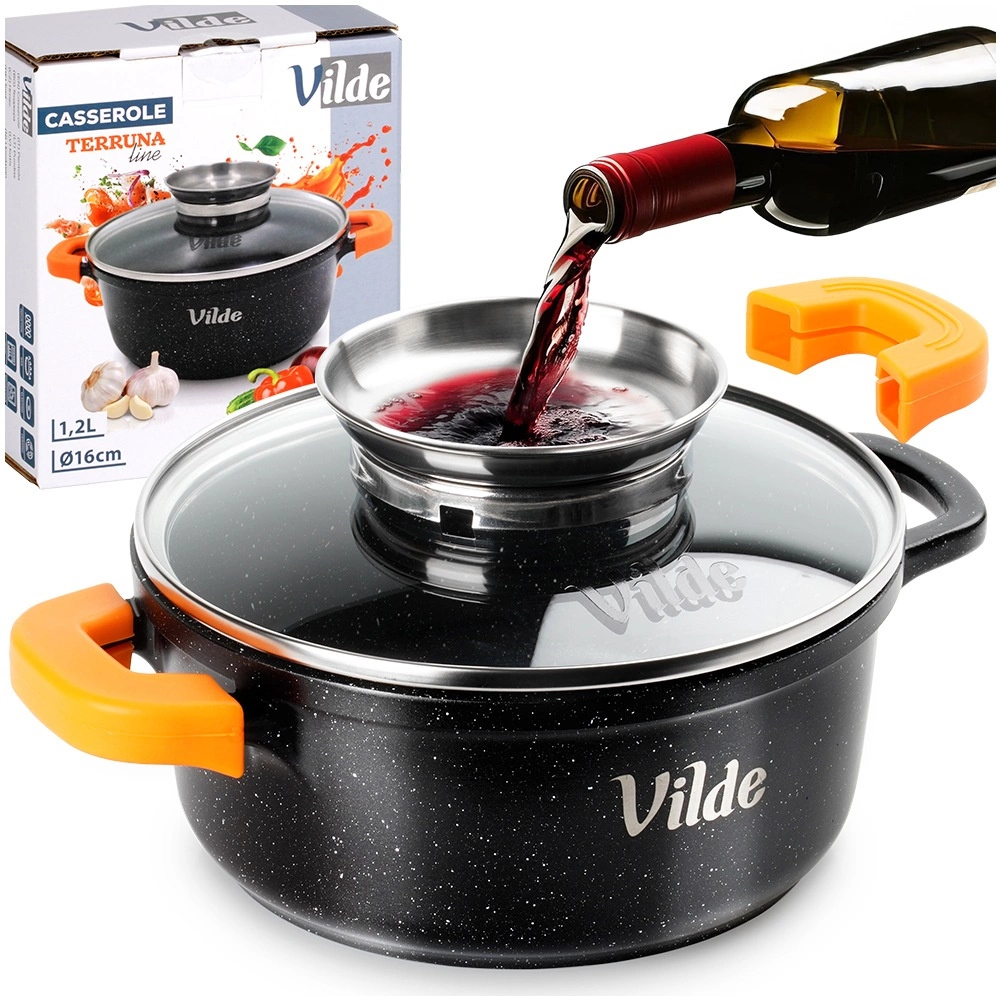 Oală universală din aluminiu turnat cu strat antiaderent din granit, ideală pentru gătitul zilnic – de la supe, sosuri și carne înăbușită până la gratinare. Capacul de sticlă cu mâner din inox funcționează totodată ca dozator pentru condimente lichide, astfel încât puteți turna fără a ridica capacul, menținând temperatura și aroma constante.